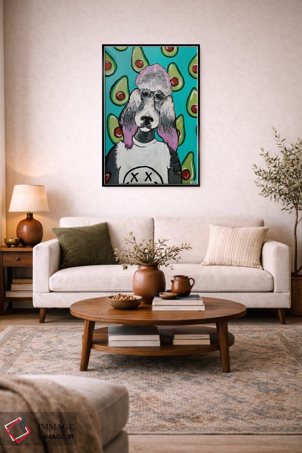 برای دیوارهای ساده، «آووکادوها و نیروانا (آرامش مطلق)» اثرِ «نیکولتا پینتس» حس طبیعت را بیدغدغه وارد خانه میکند؛ برای اتاق کودک (بدون لحن کودکانه) انتخابی خوشسلیقه است. با نورپردازی نقطهای، جذابتر هم میشود.