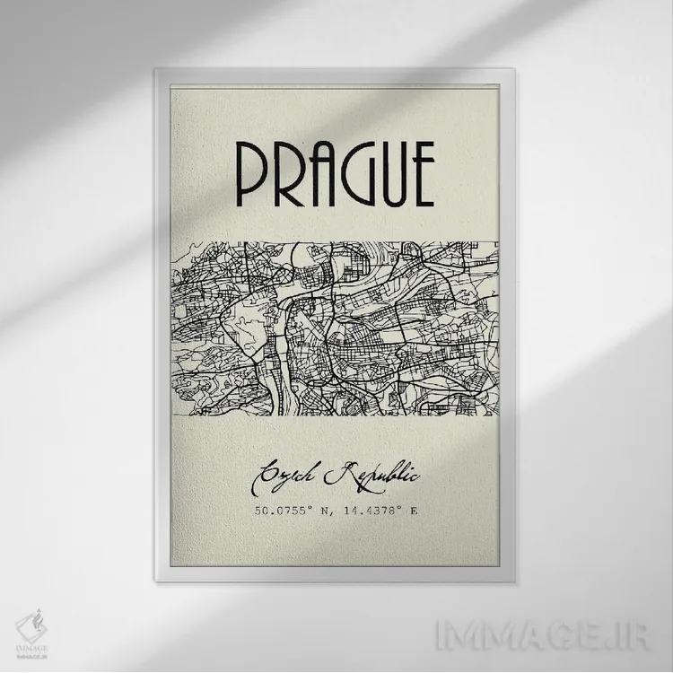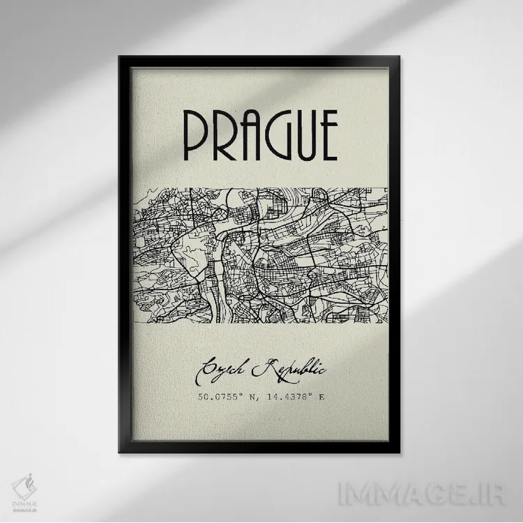 «نقشه شهر پراگ» اثرِ «نوردیک پرینت استودیو (استودیو چاپ هنری)» با موضوعِ این اثر، به چیدمان رنگی فضا کمک میکند و حس پرداختِ هنری را هم حفظ میکند.