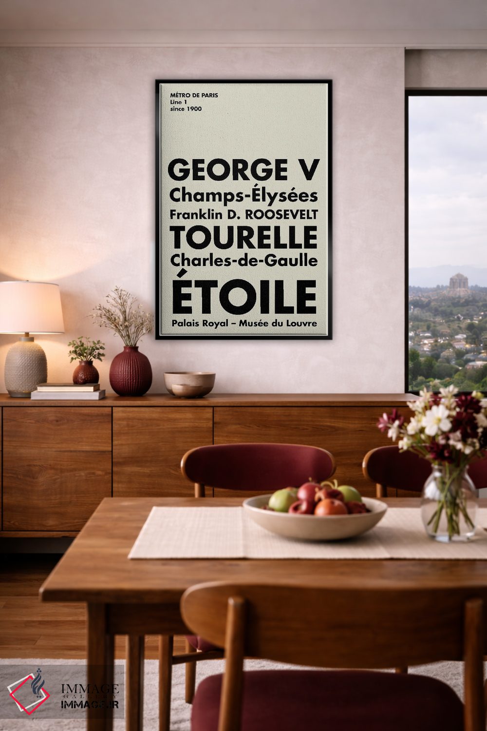 «تابلوی ایستگاههای متروی پاریس» اثرِ «نوردیک پرینت استودیو (استودیو چاپ هنری)» با حالوهوای این اثر، برای بالای کنسول یا کنار قابهای ساده، ترکیب چشمنوازی میسازد.