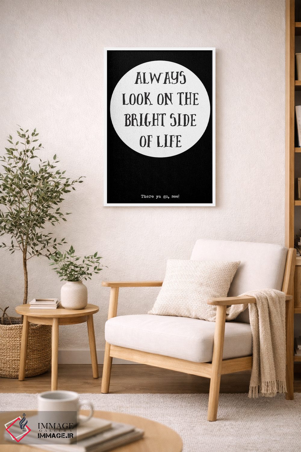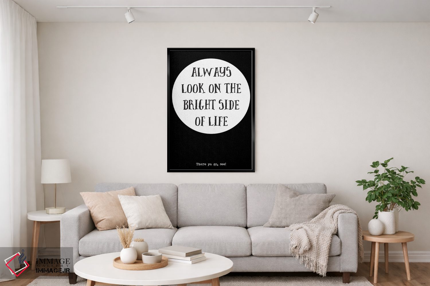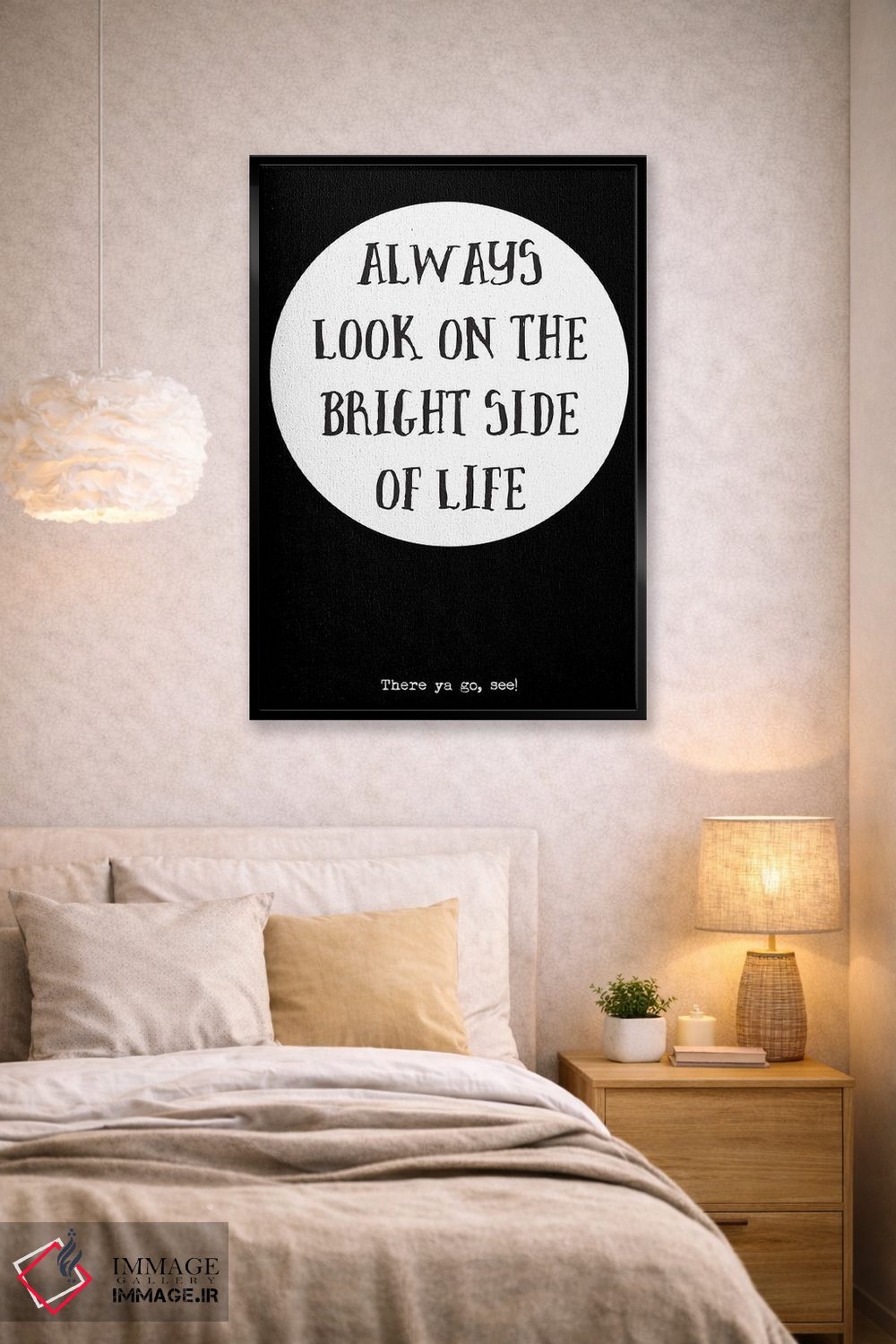 اگر دکور شما بر پایهی متن و تایپ است، «همیشه به جنبه روشن زندگی نگاه کن» اثرِ «نوردیک پرینت استودیو (استودیو چاپ هنری)» با سبک پرداختِ هنری انتخابی تمیز و کاربردی است.