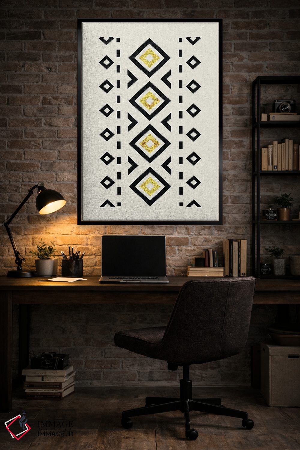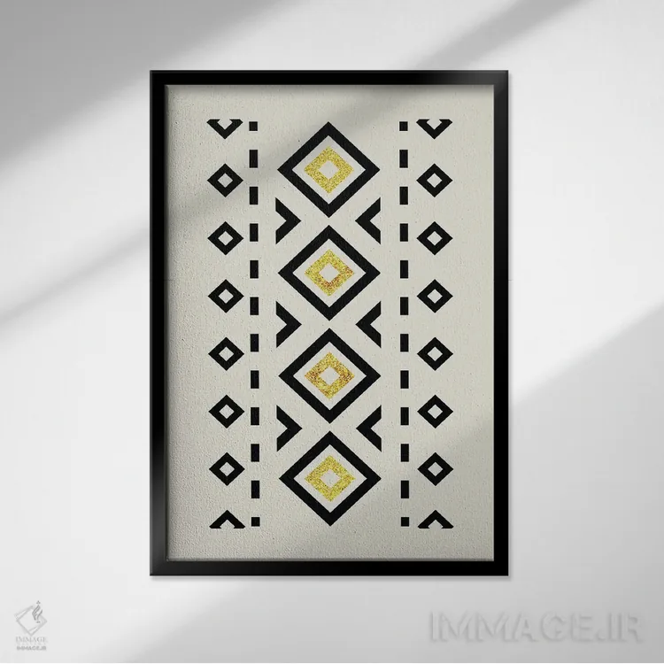 در «هنر قبیلهای انتزاعی طلایی و مشکی ۲» اثرِ «نوردیک پرینت استودیو (استودیو چاپ هنری)»، رنگ و فرم نقش اصلی را دارند؛ انتخابی خوب برای فضاهای امروزی و دیوارهای مینیمال.