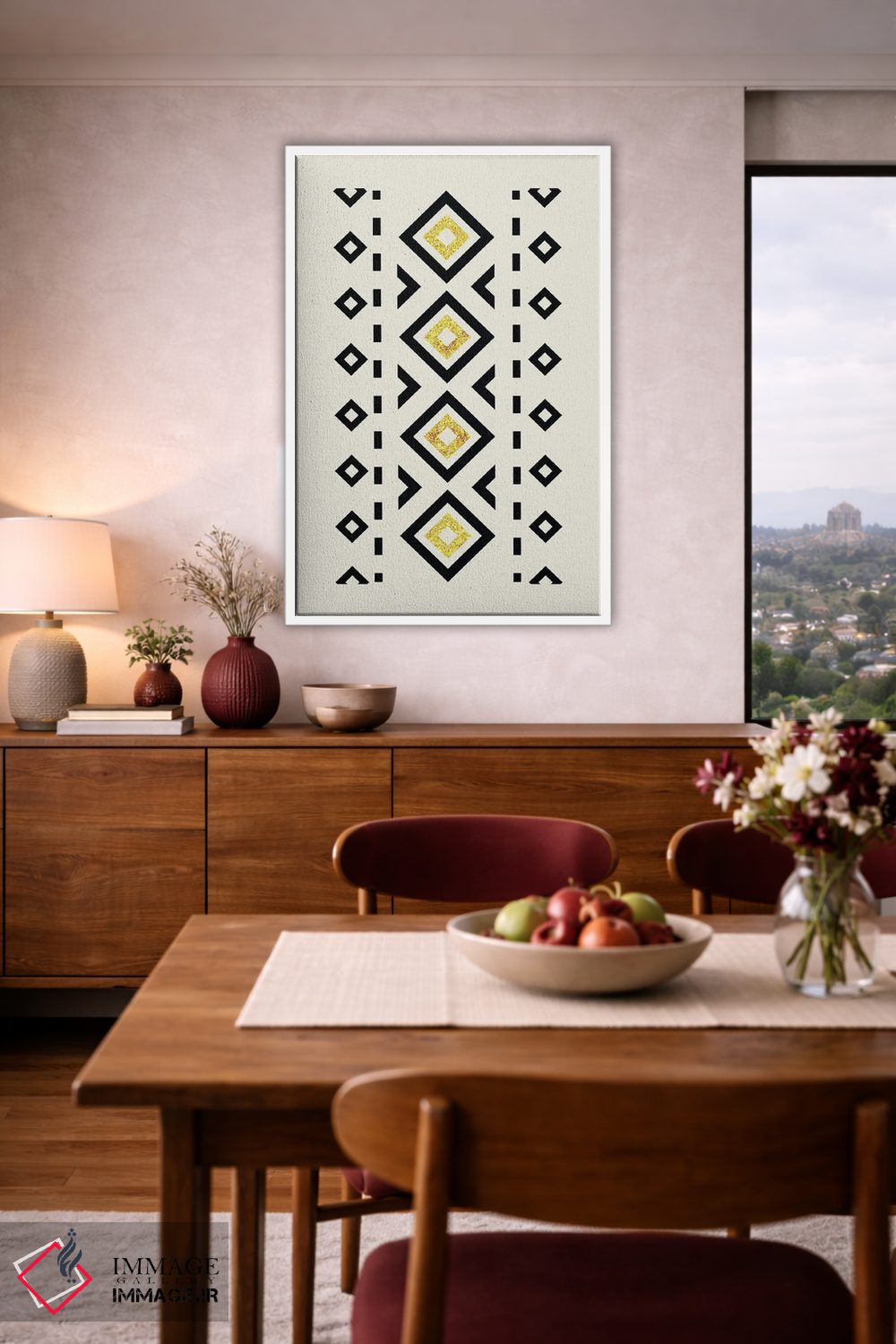 براساس پالت گرم اثر، قاب تیک گرم (چوبی) پیشنهاد اول است و مشکی مات (فریم متوسط) مکمل. برای سفارشهای پروژهای با ابعاد و قابهای اختصاصی با ایماژ در تماس باشید.