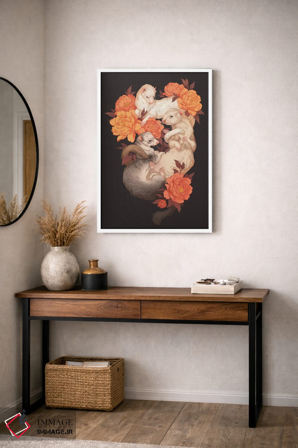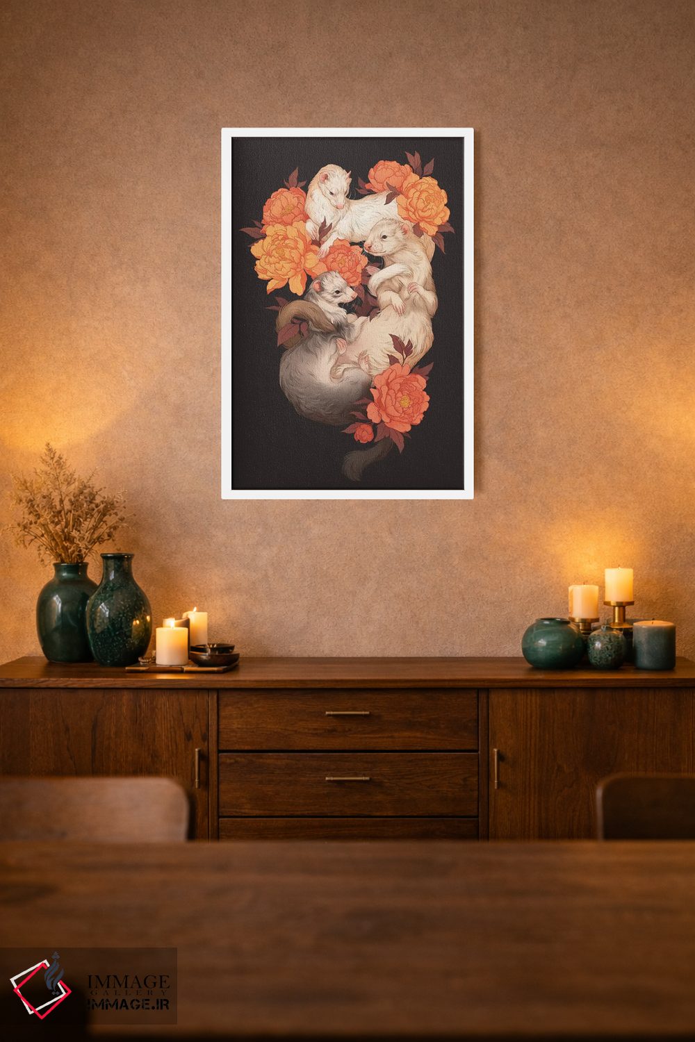 در «برادران درهمتنیده» اثرِ «نورا پوتوورا»، حضور حیوانات بدون کودکانه شدن، بازیگوش و خوشپرداخت میماند؛ برای خانههایی با چوب و پارچههای گرم انتخابی خوشسلیقه است. با قاب چوبی یا مشکی، حس مرتبتری پیدا میکند.