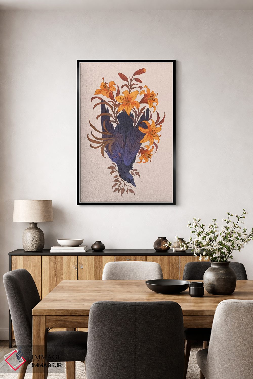 برای اتاقی که به یک عنصر دوستداشتنی نیاز دارد، «در میان زنبقها» اثرِ «نورا پوتوورا» بافت و جزئیات را طوری نشان میدهد که نگاه میماند؛ برای هدیهدادن به دوستداران حیوانات انتخابی خوشسلیقه است. با نورپردازی نقطهای، جذابتر هم میشود.