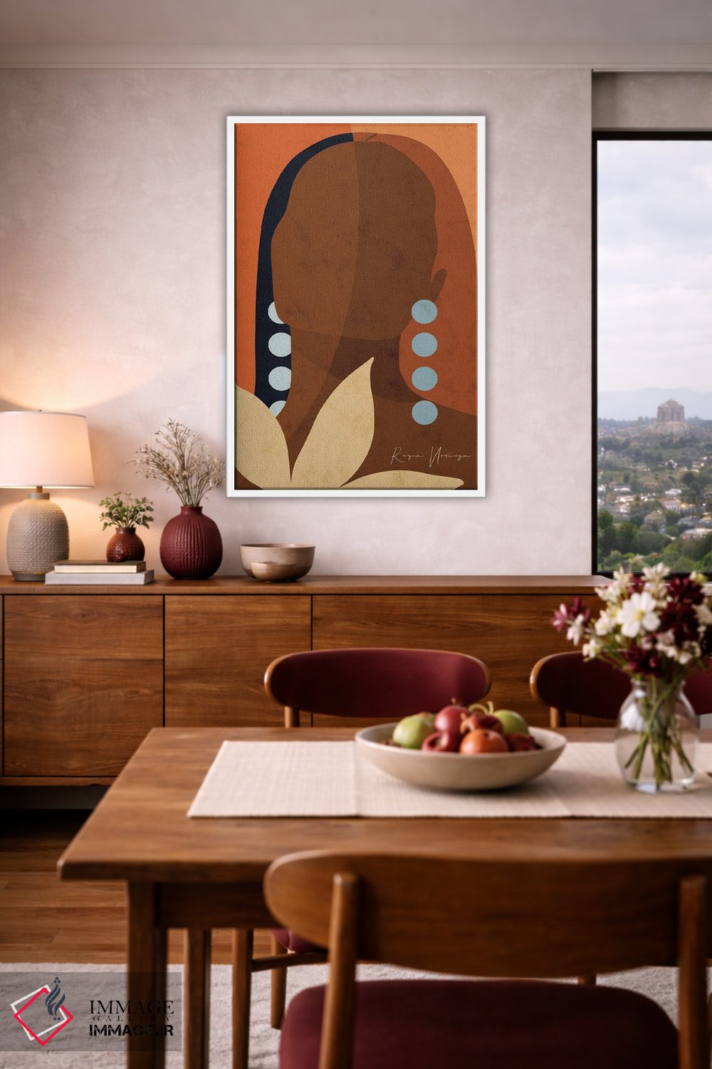 براساس پالت گرم اثر، قاب تیک گرم (چوبی) پیشنهاد اول است و مشکی مات (فریم متوسط) مکمل. برای سفارشهای پروژهای با ابعاد و قابهای اختصاصی با ایماژ در تماس باشید.