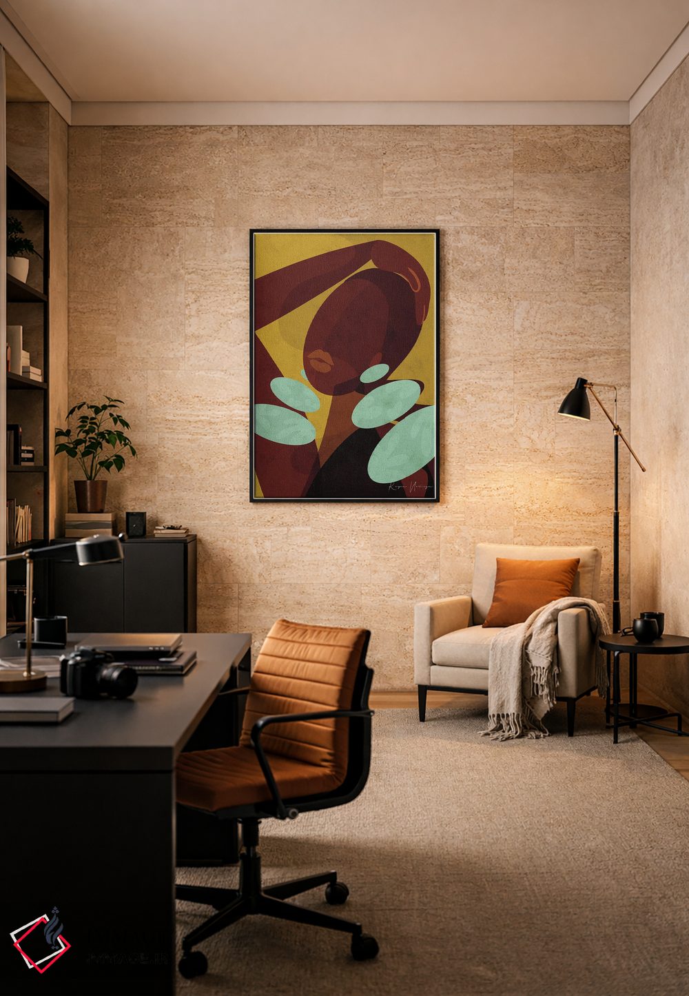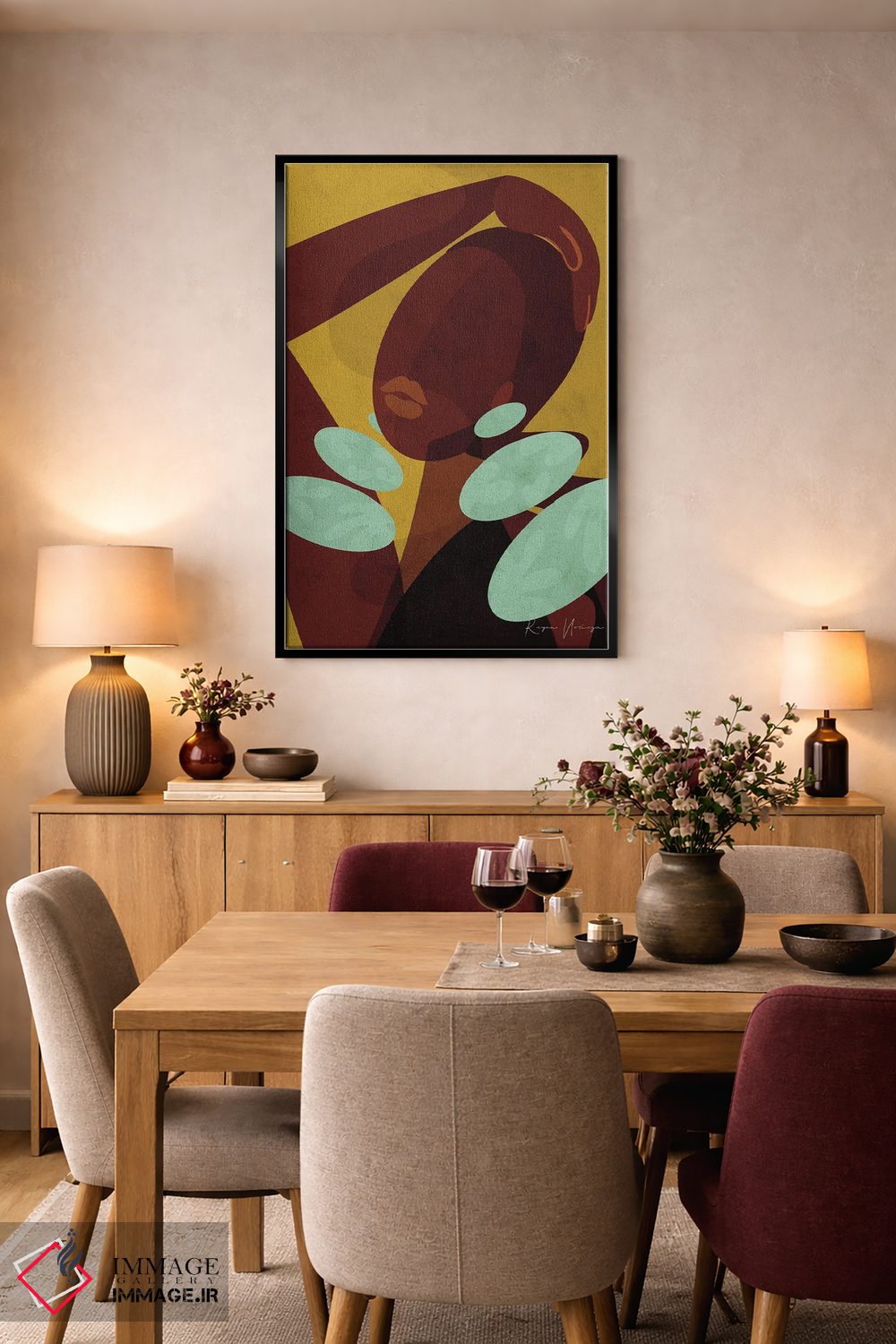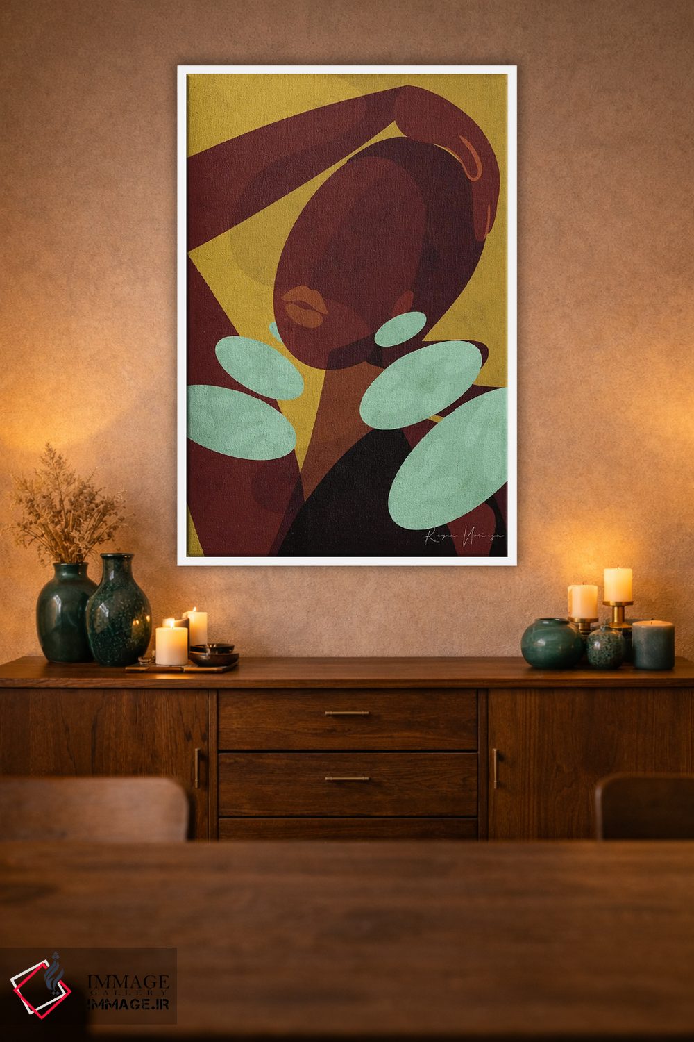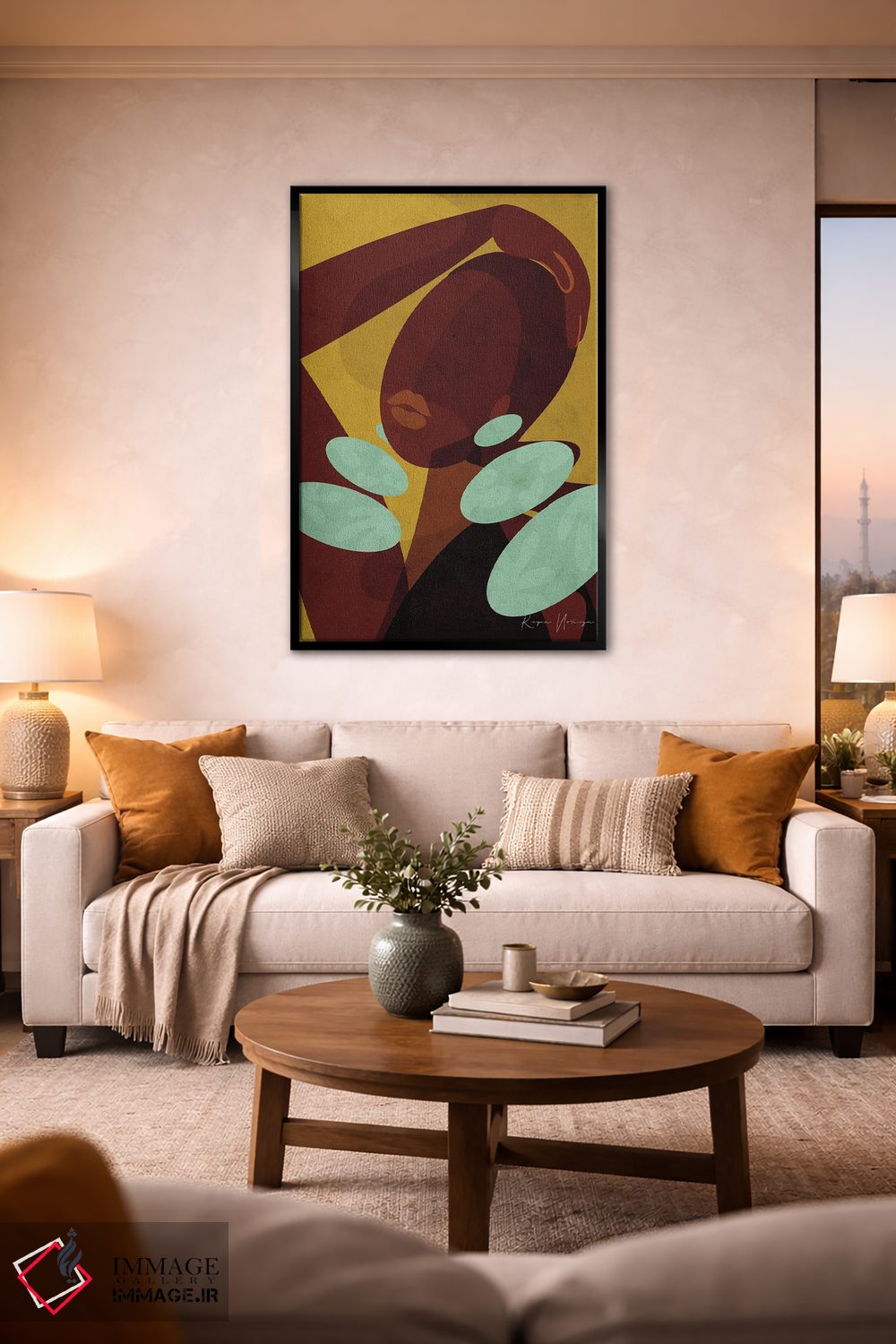 براساس پالت گرم اثر، قاب تیک گرم (چوبی) پیشنهاد اول است و مشکی مات (فریم متوسط) مکمل. برای سفارشهای پروژهای با ابعاد و قابهای اختصاصی با ایماژ در تماس باشید.