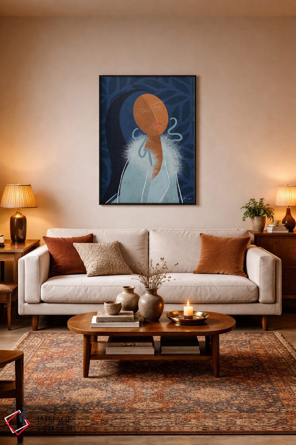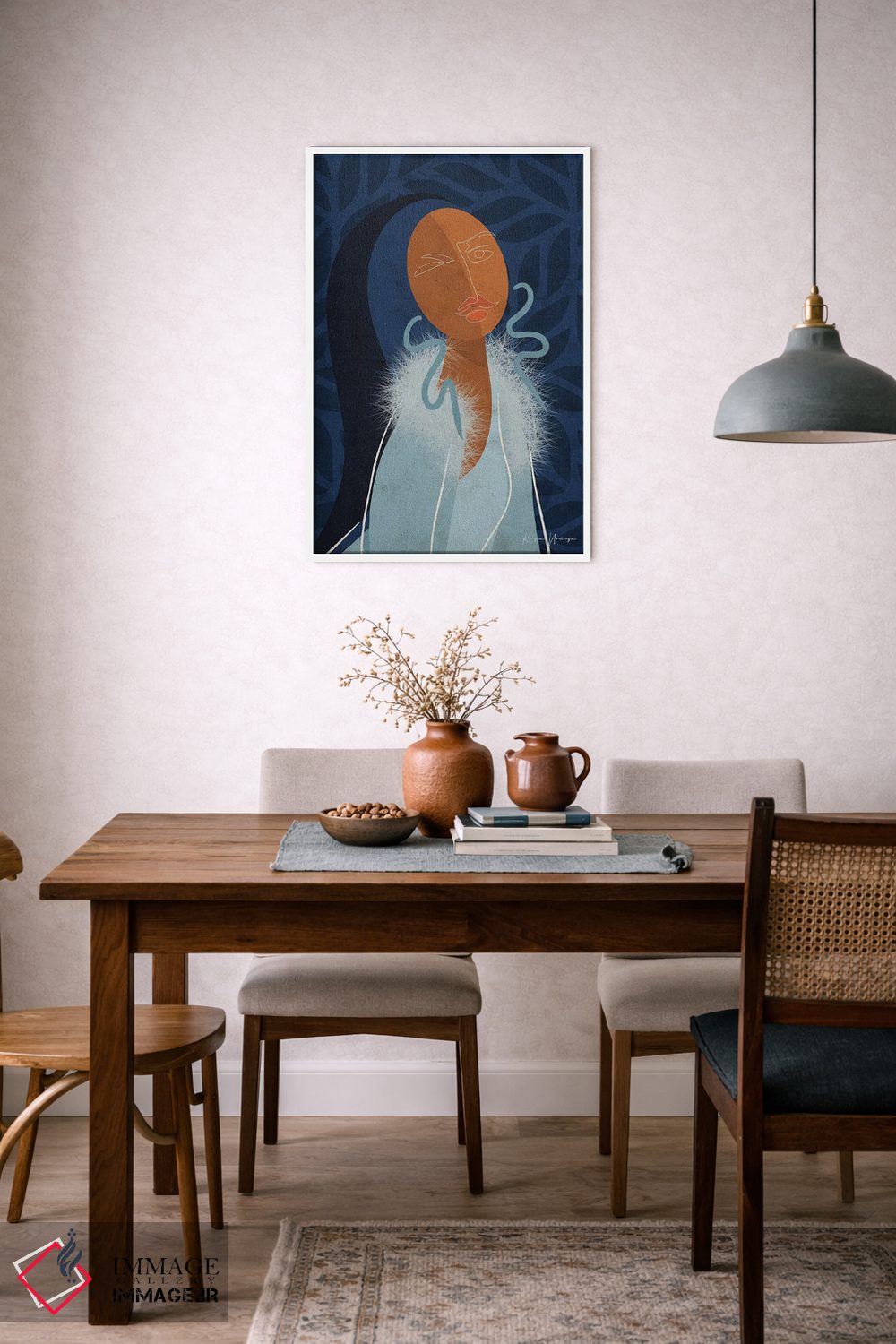 بوم گالری ایماژ نسخهی چیدماناتیوِ باکیفیت از یک اثر هنری است؛ روی کنواس سفیدِ یکدست و بدون اسید با فرآیند چاپ حرفهای جیکلی (Giclée) و کنترل دقیق تونها با جوهرهای آرشیویِ حرفهای برای لایههای رنگی خواناتر؛ حس نهایی نزدیکتر به ارائهی گالریوار است؛ نه صرفاً یک تصویر. اسمبل تمیز و آمادهی نصب؛ کشیدگی استاندارد روی کلاف و یراق مناسب. برای قابهای متنوعتر و اندازه سفارشی، تیم ایماژ راهنماییتان میکند.