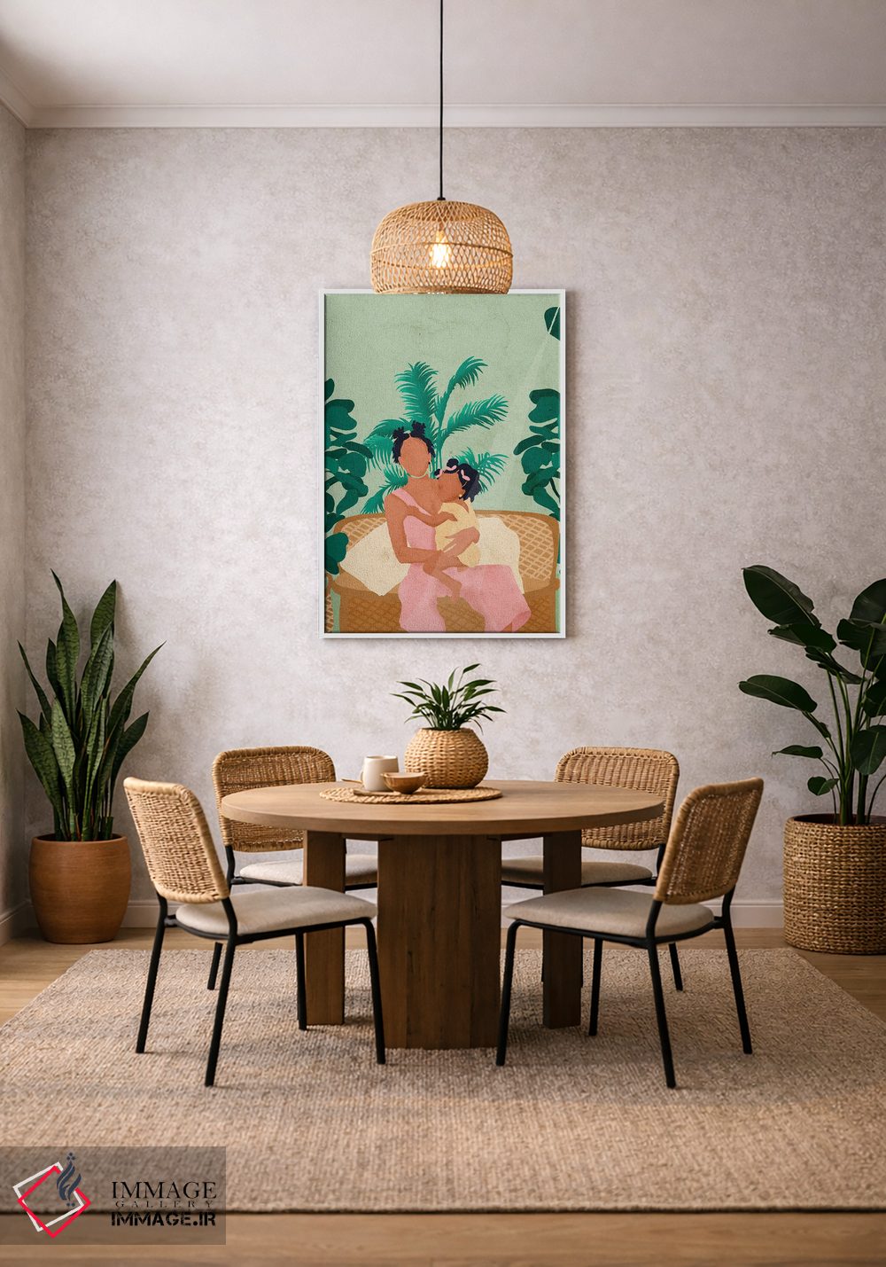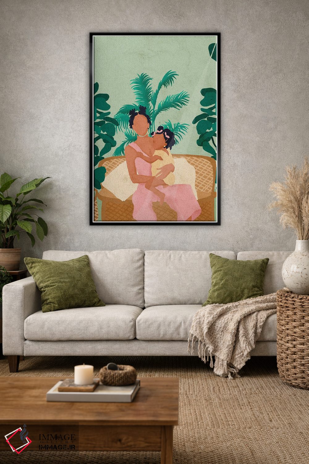 اگر ابعاد دیوار را دارید، با ایماژ از طریق تماس—با—ما/">تماس با ما در ارتباط باشید تا تصمیم سریعتر شود. بهشرطی که اثر در محیط «گرم و صمیمی» دیده شود، انتخاب قاب مناسب کمک بزرگی است و تصمیم را سادهتر میکند.