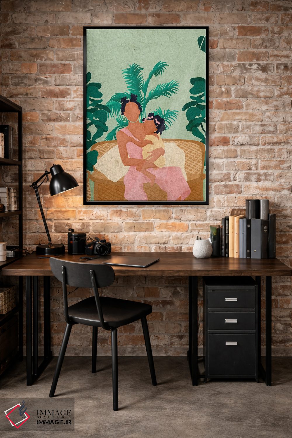 «جودی و نوزاد» اثرِ «رینا نوریگا» بهخاطر ساختار گرافیکیاش، کنار رنگهای خنثی و دکور صنعتی هم خوب جلوه میکند.