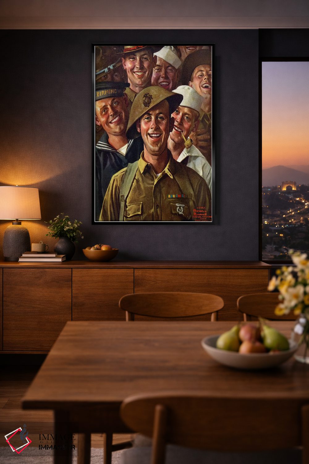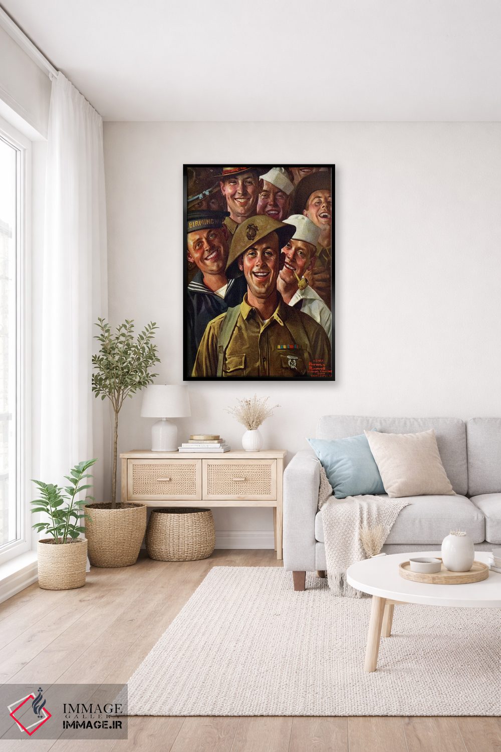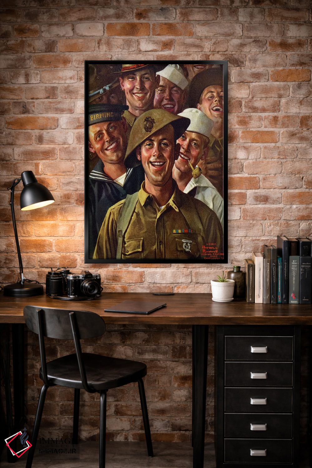 «آیا دلشکستهایم؟» اثرِ «نورمن راکول» با موضوعِ این اثر، به چیدمان رنگی فضا کمک میکند و حس پرداختِ هنری را هم حفظ میکند.