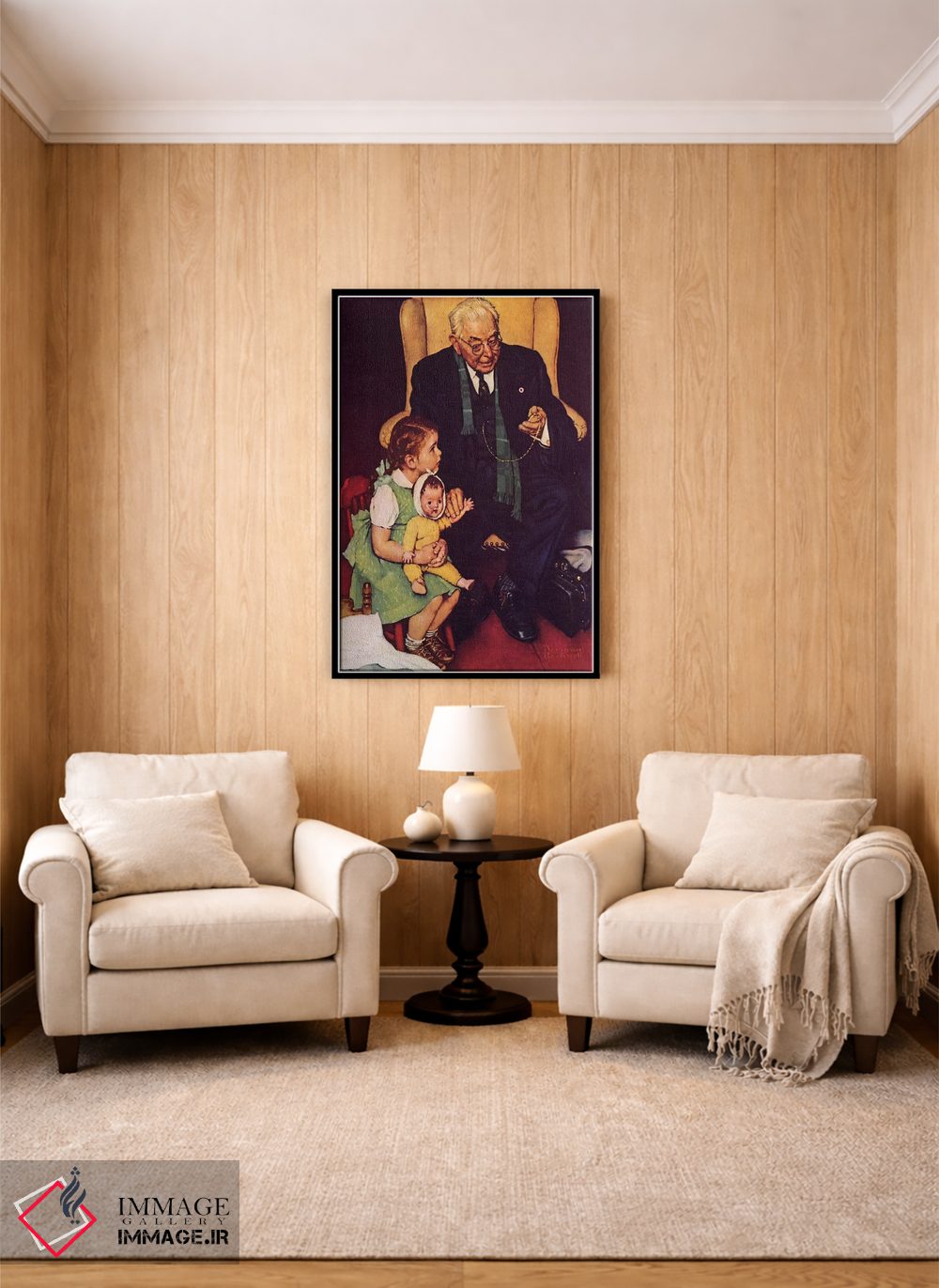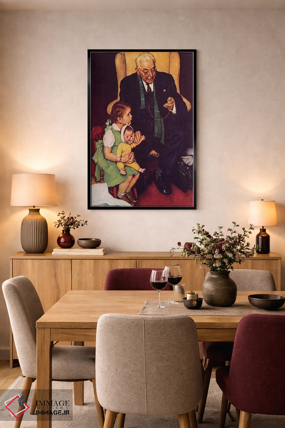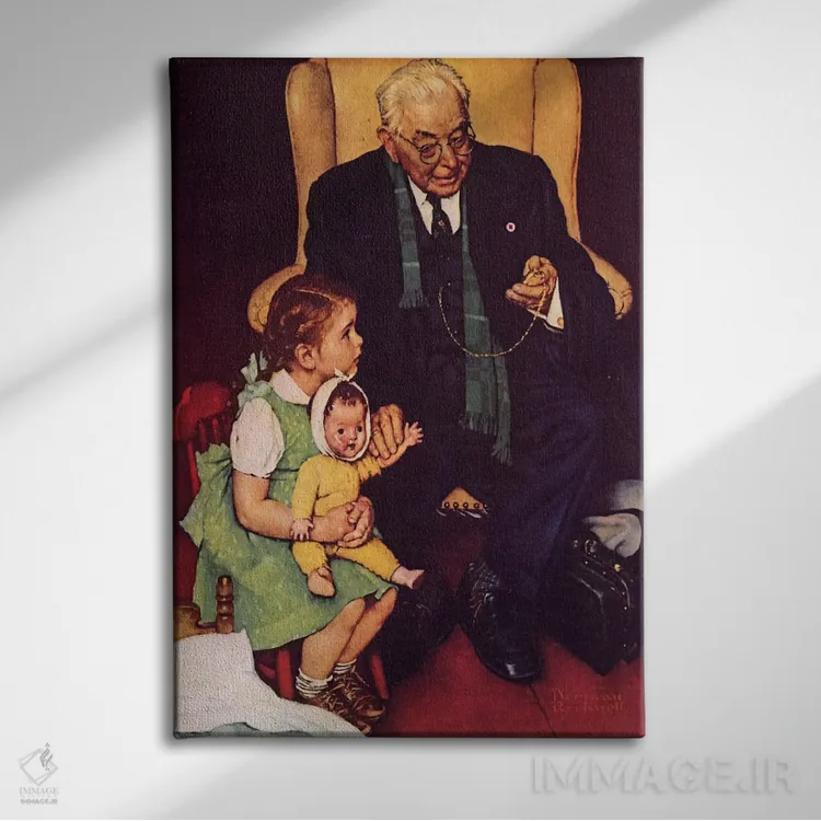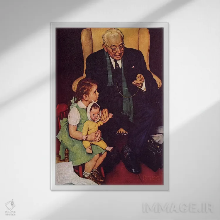 اگر به قابهای رسمی و گالریپسند علاقه داری، «پزشک و عروسک» اثرِ «نورمن راکول» با موضوعِ این اثر در فضای فاخر کلاسیک گزینهی مطمئنی است.