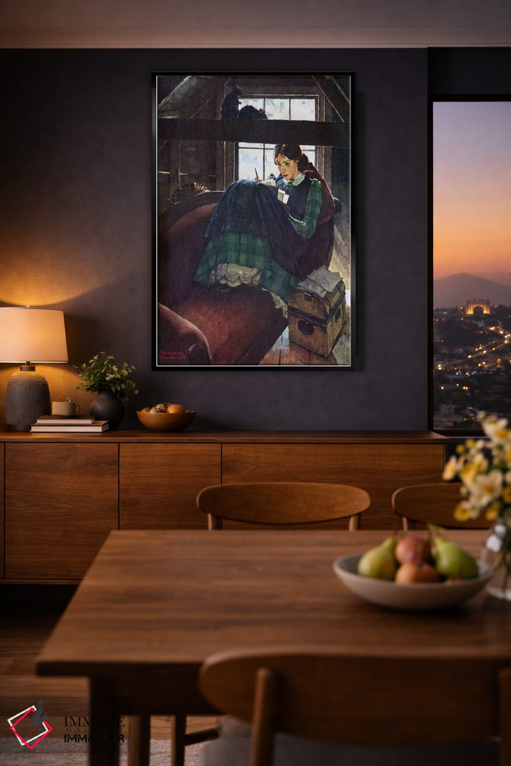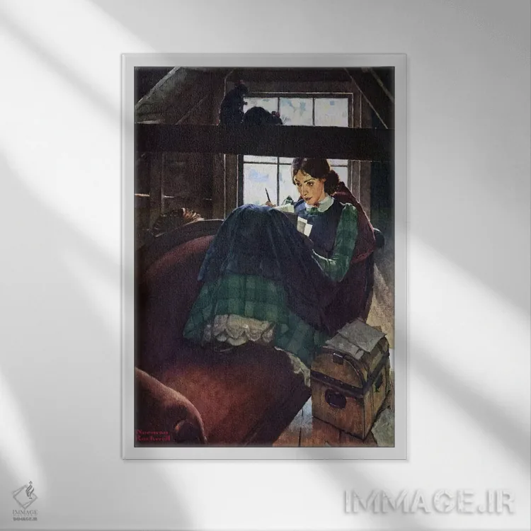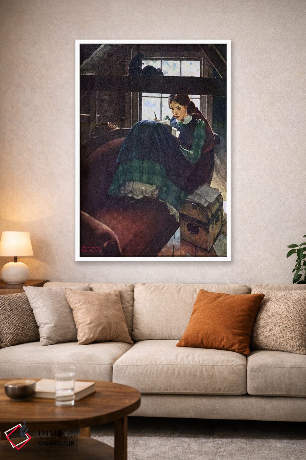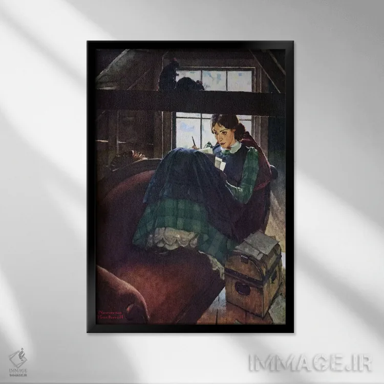 «محبوبترین نویسنده زن آمریکایی» اثرِ «نورمن راکول» یک قاب غیرکلیشهای است؛ موضوعِ این اثر در حس آلترناتیو، فضا را خاصتر نشان میدهد.