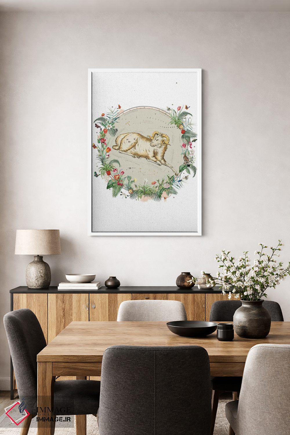 در «فال برج حمل»، اثرِ «ناتالی رایان» این اثر را با حس بوهو ارائه میکند؛ برای دیوارهای روشن و اکسسوریهای طبیعی، عالی است.