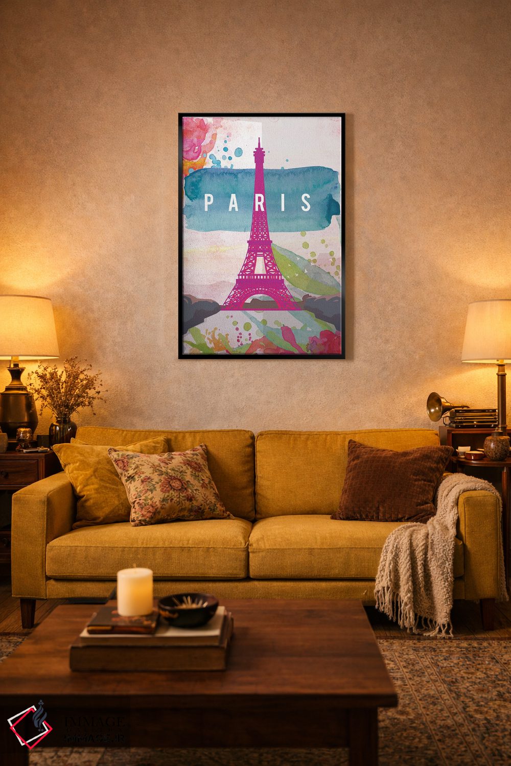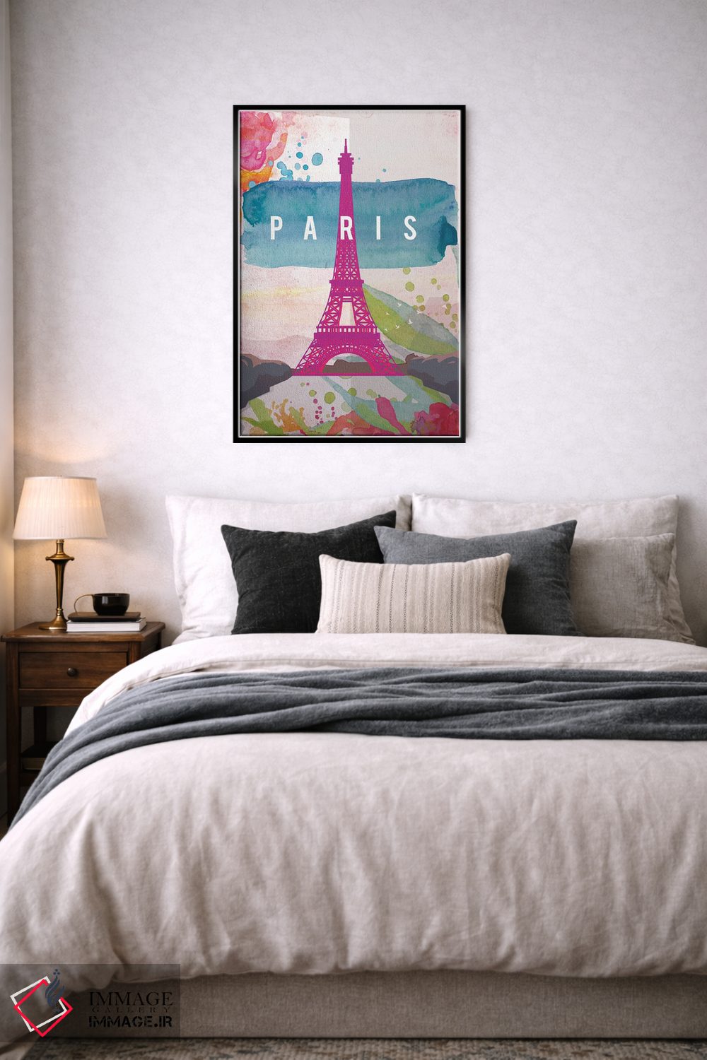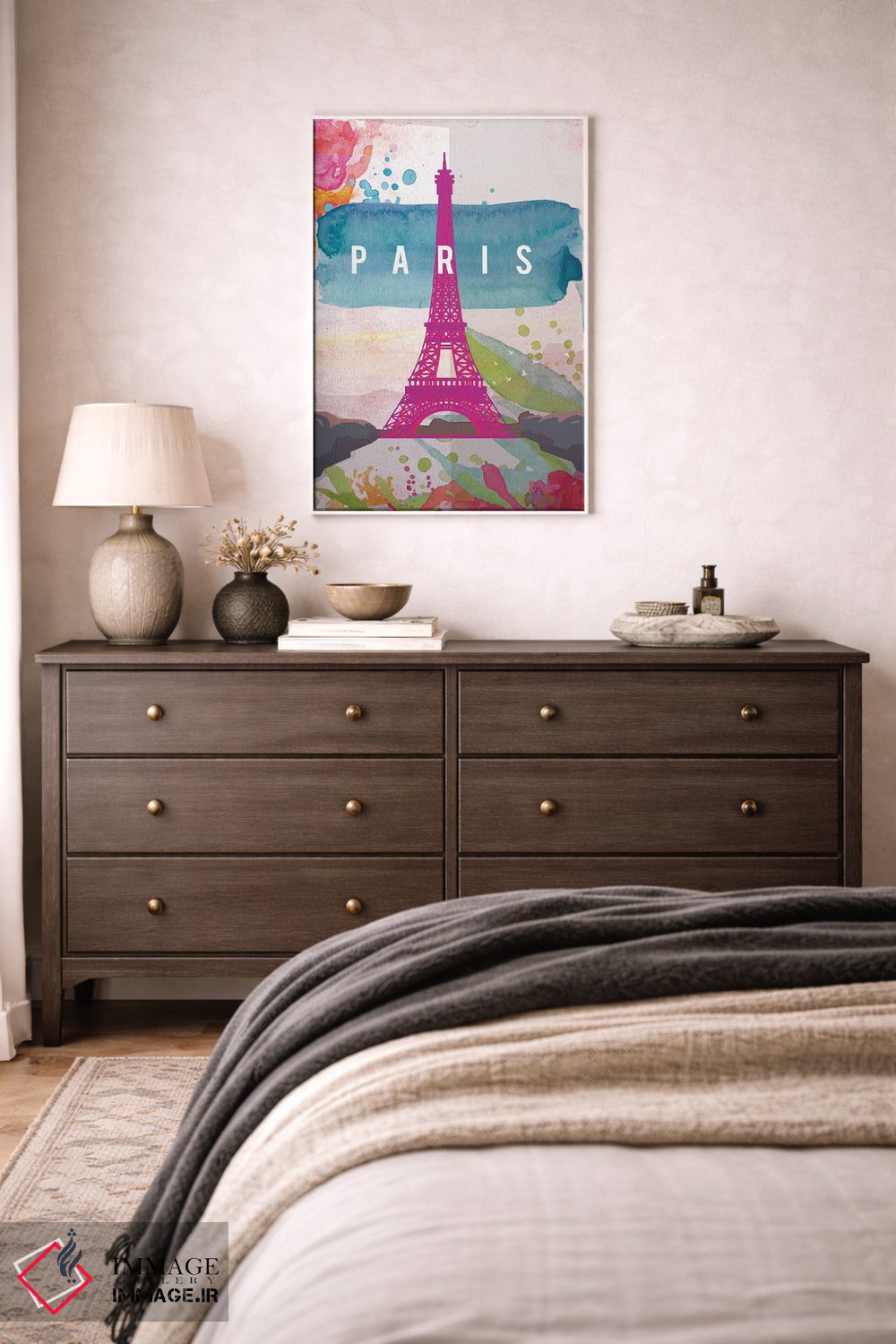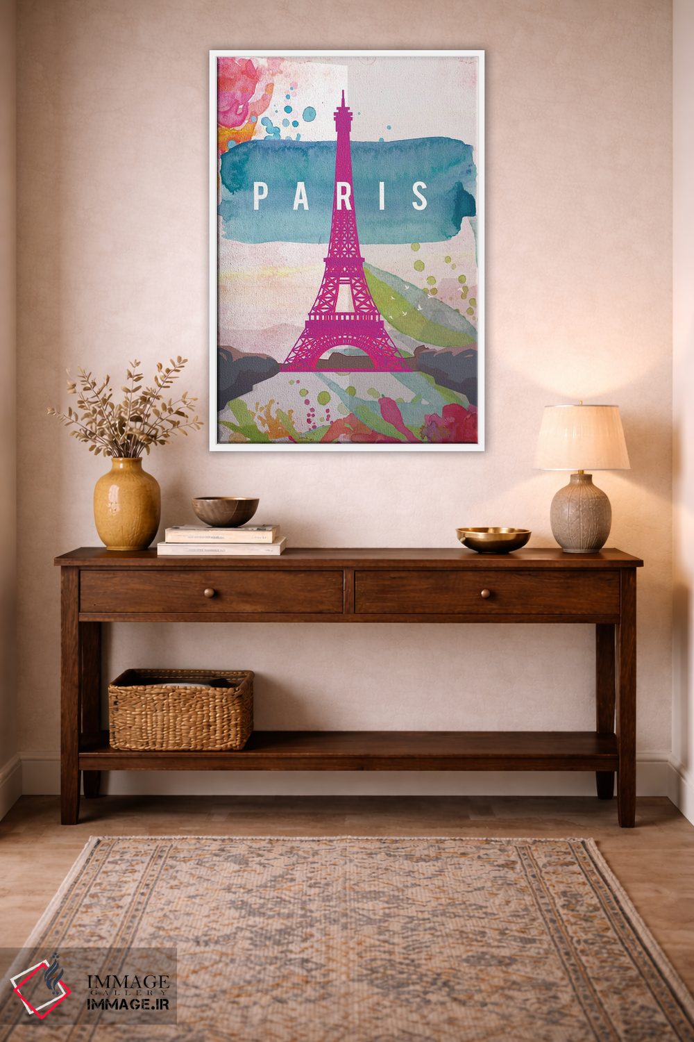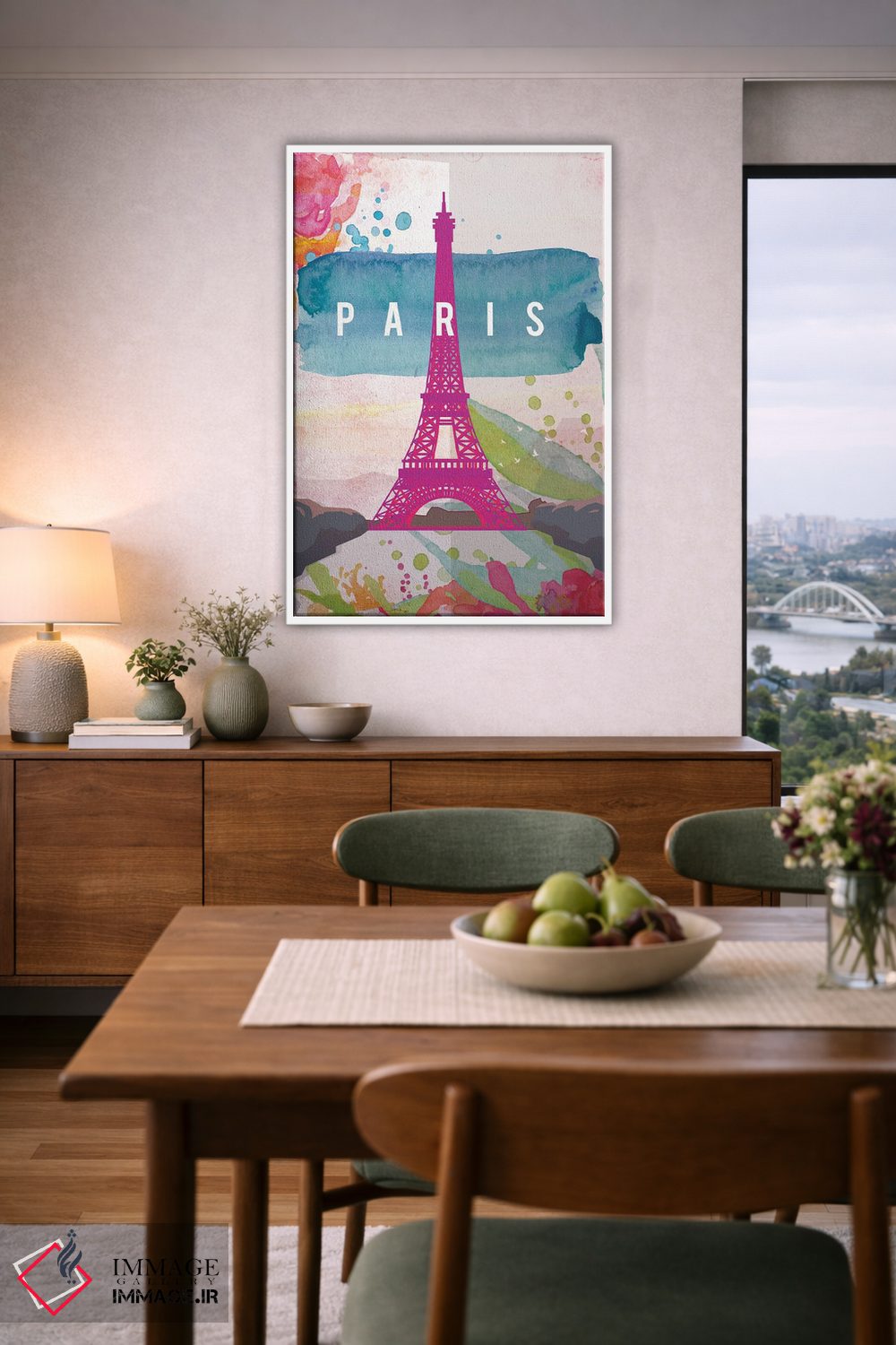 «پوستر سفر پاریس» اثرِ «ناتالی رایان» با حالوهوای این اثر، برای بالای کنسول یا کنار قابهای ساده، ترکیب چشمنوازی میسازد.