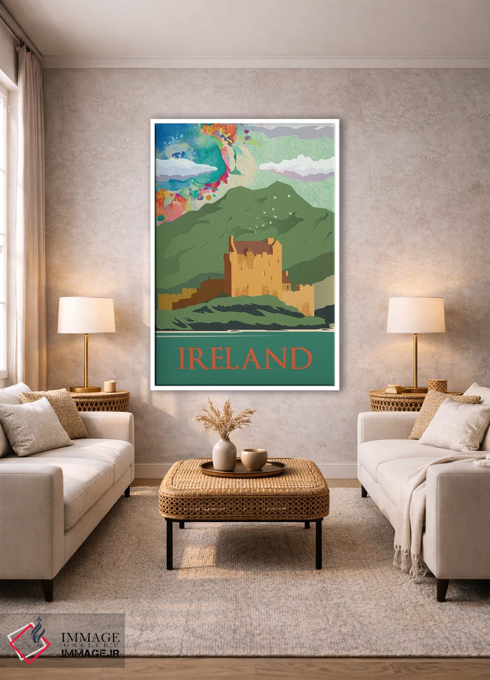 تابلو مدرن پوستر سفر به کوه های سبز ایرلند اثر ناتالی رایان