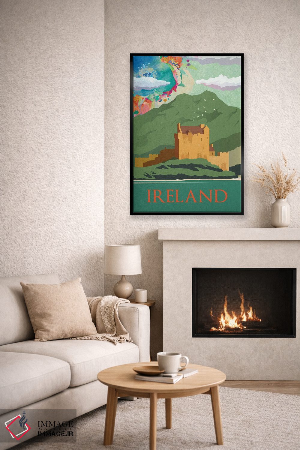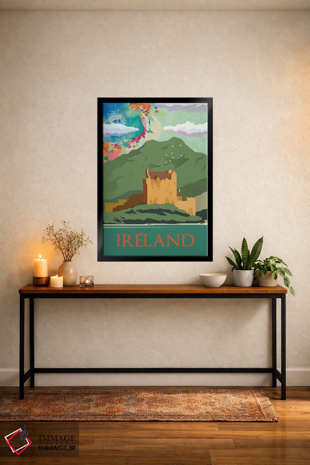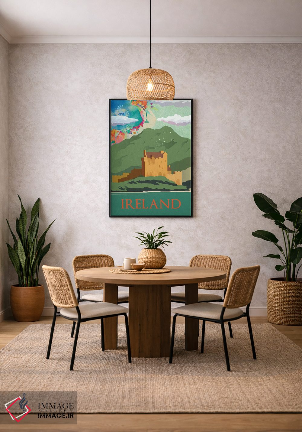 «پوستر سفر به کوههای سبز ایرلند» اثرِ «ناتالی رایان» برای دکورهای بوهو، اسکانباوراوی یا مینیمال هم جواب میدهد؛ چون عنصر اصلی، لطافت و تعادل است.
