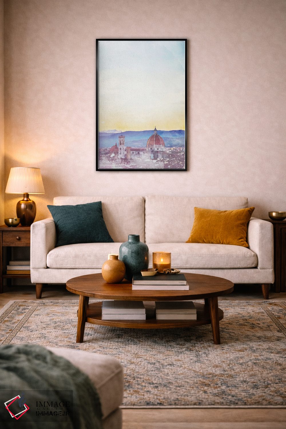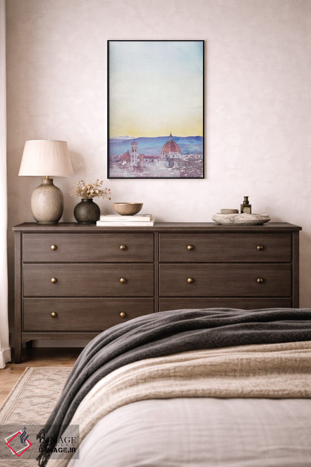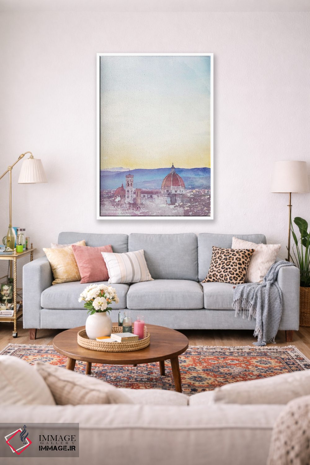 برای اتاق خواب، راهرو یا بالای کنسول، «پوستر سفر به فلورانس (ایتالیا)» اثرِ «ناتالی رایان» با موضوعِ این اثر و روحیه پرداختِ هنری انتخاب دلنشینی است.