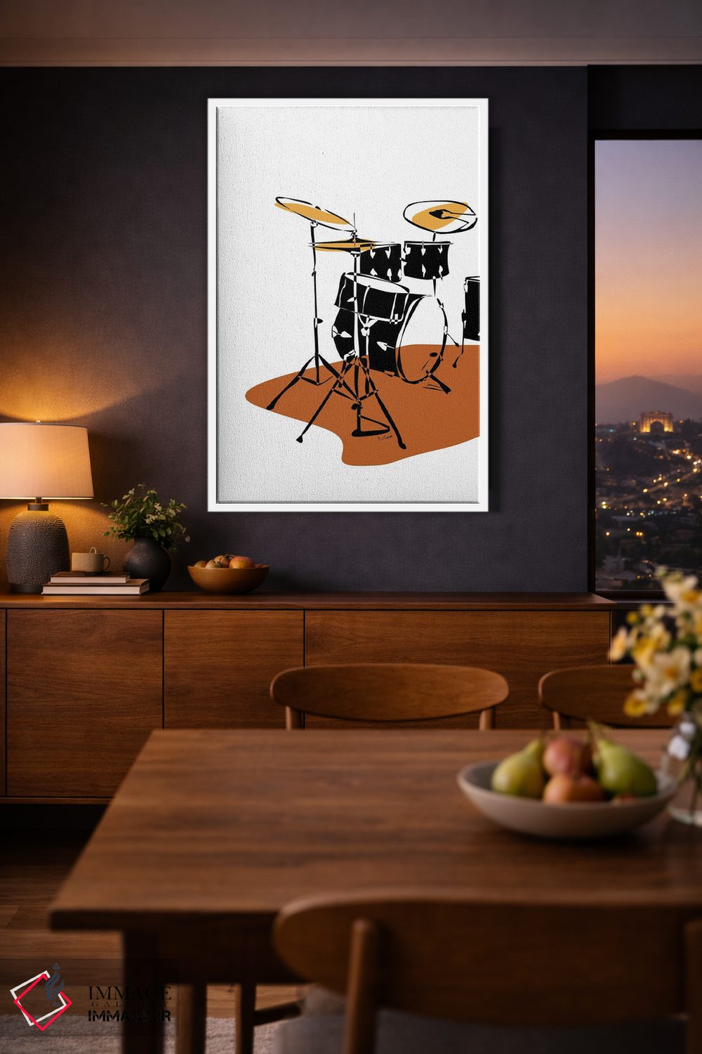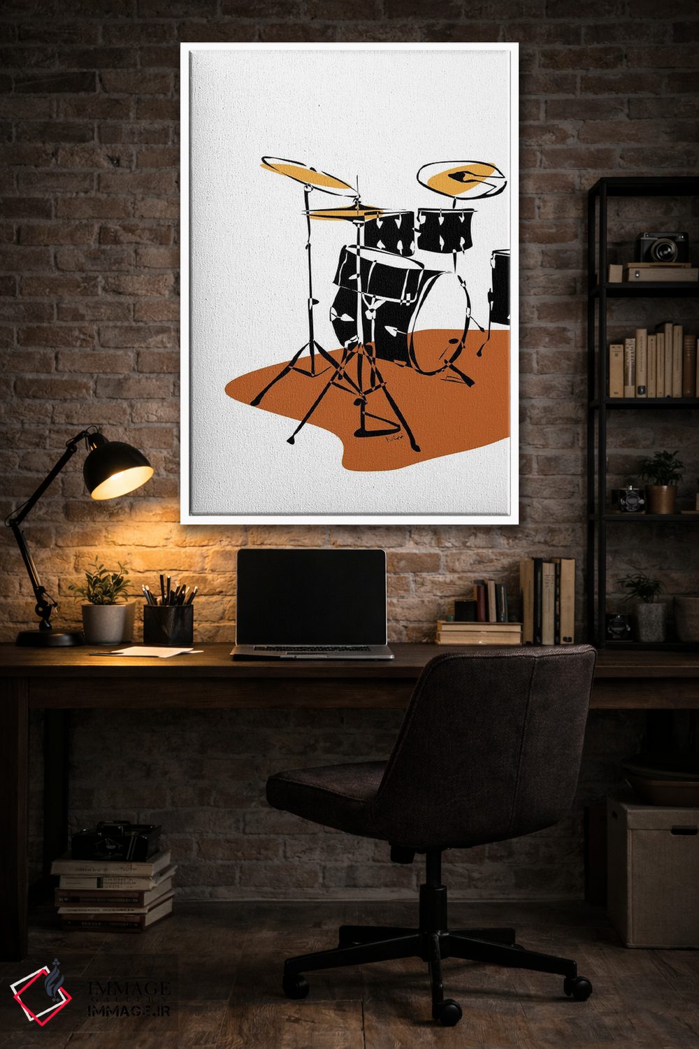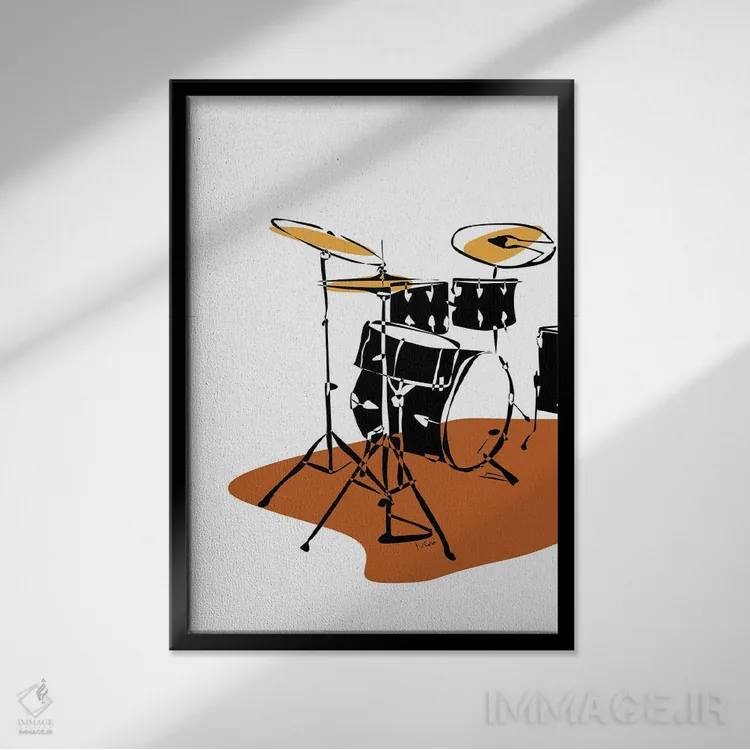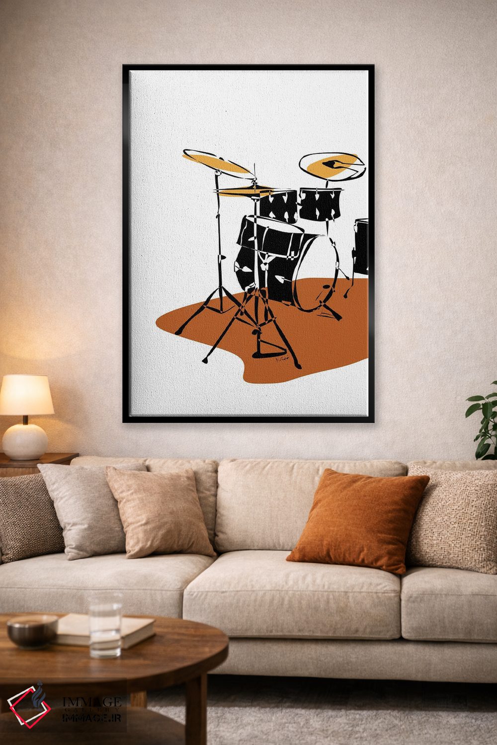 تابلو مینیمال ست درام سفالی اثر نیسه کرونا - نمای قاب‌دار مشکی