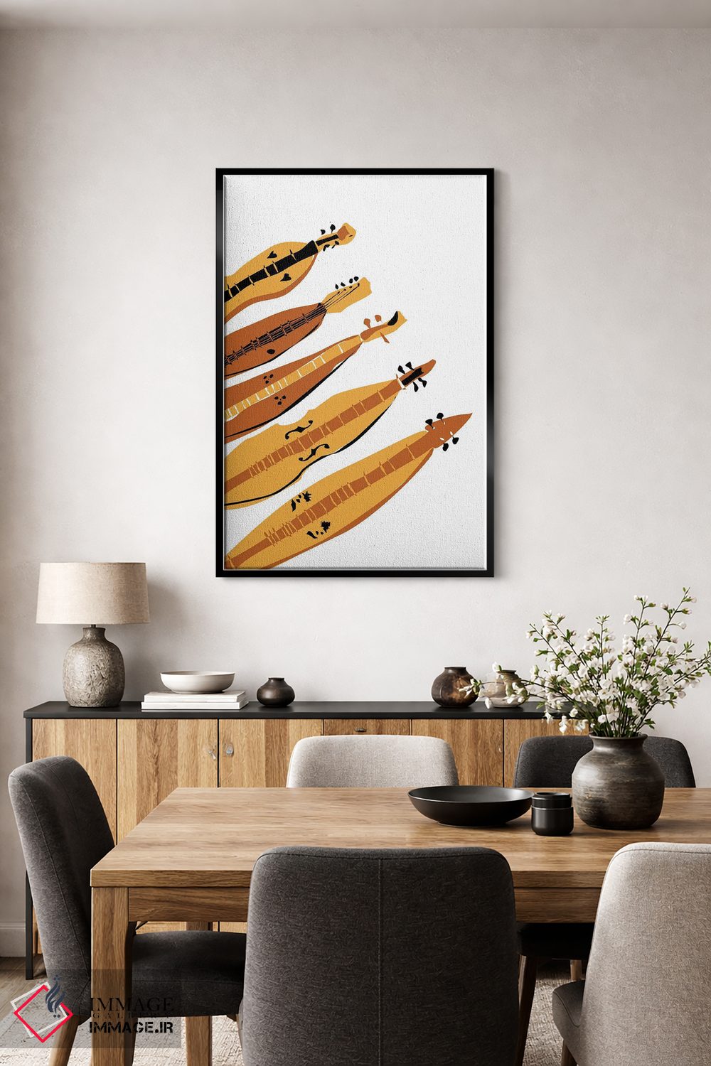 براساس پالت گرم اثر، قاب تیک گرم (چوبی) پیشنهاد اول است و مشکی مات (فریم متوسط) مکمل. برای سفارشهای پروژهای با ابعاد و قابهای اختصاصی با ایماژ در تماس باشید.