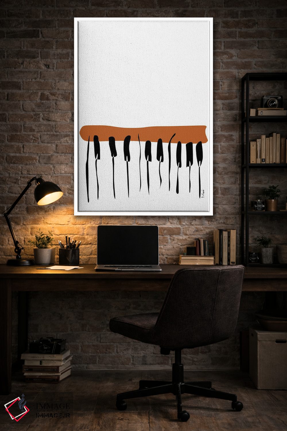 تابلو مینیمال پیانوی خاکی اثر نیسه کرونا - نمای روبه‌رو روی دیوار