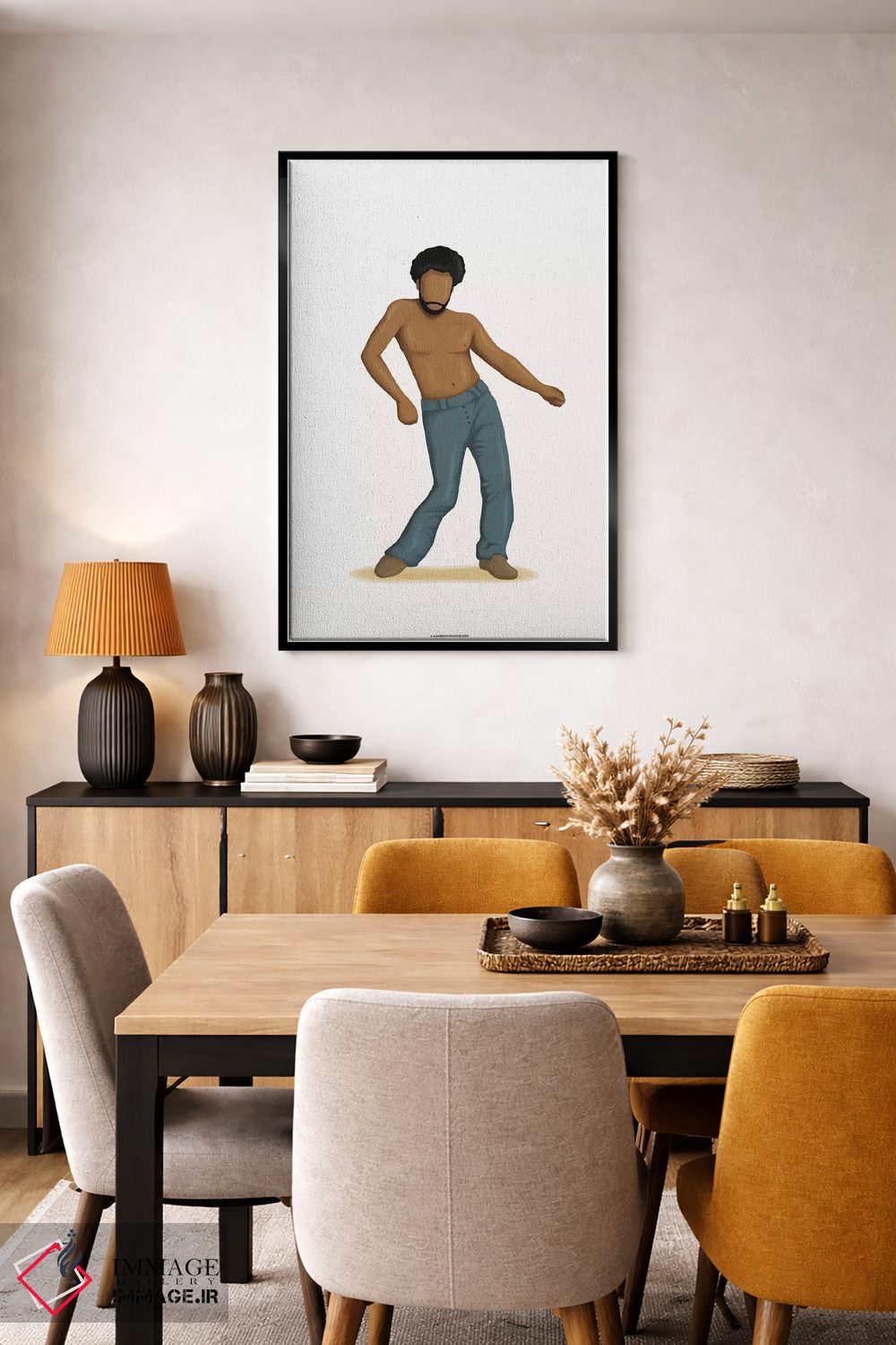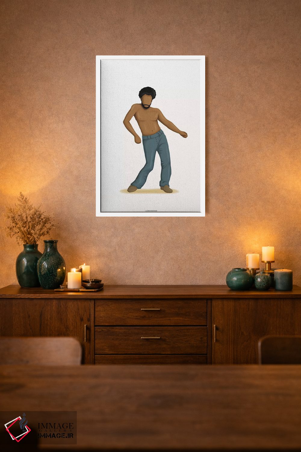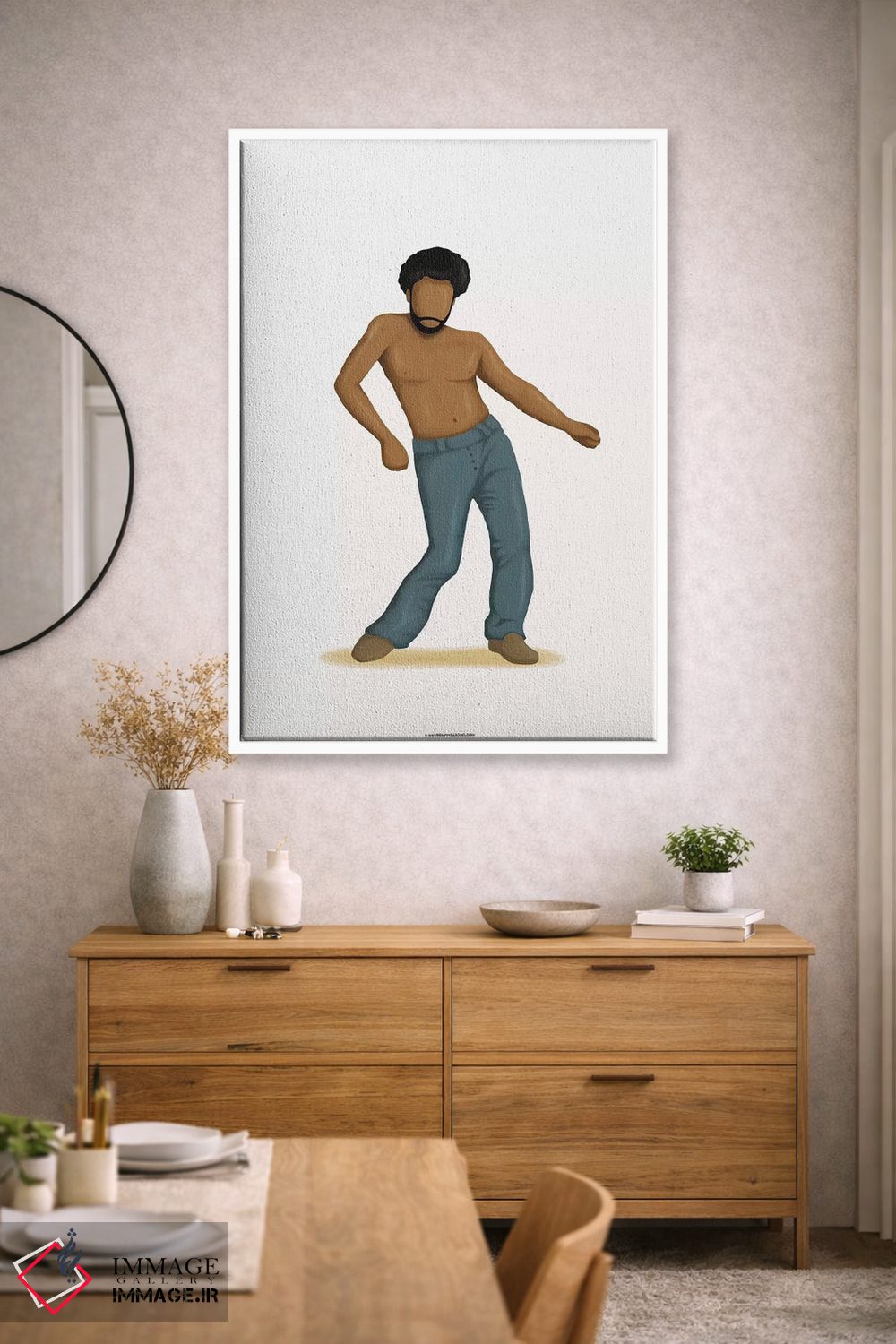 ساختار بوم گالری ایماژ طوری است که اثر روی دیوار «پرداختشده» و حرفهای دیده شود—نه پرزرقوبرقِ بیپایه؛ بلکه دقیق و خوشپرداخت. بافت ظریف کنواس باعث میشود حس اثر هنری را در نگاه نزدیک نگه میدارد بدون اغراق؛ فقط دقیقتر. با قابپذیری، هماهنگی قاب با پالت رنگ جلوه را تقویت میکند بهخصوص وقتی نور موضعی ملایم داشته باشید. حاصل کار، یک تابلو خوشنشین است که هم از دور اثرگذار است و هم از نزدیک خوشخوان؛ و اگر بخواهید، میتوان چیدمان را برای گالریوال هم پیشنهاد داد. در دیوارهای خنثی (سفید، کرم، طوسی روشن) اثر تمیزتر خودش را نشان میدهد.
