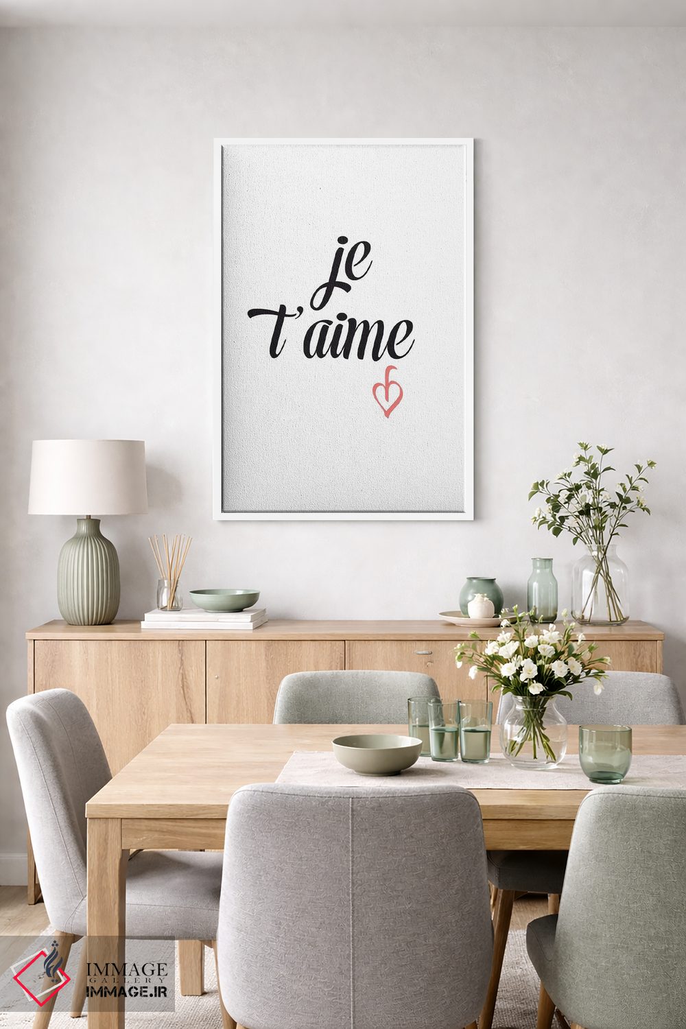 این اثر با حس این اثر و پرداختِ هنری، برای دکورهای روشن و مینیمال عالی جواب میدهد: «دوستت دارم (به فرانسوی)» اثرِ «نووو پرینتس (چاپ هنری نوین)».