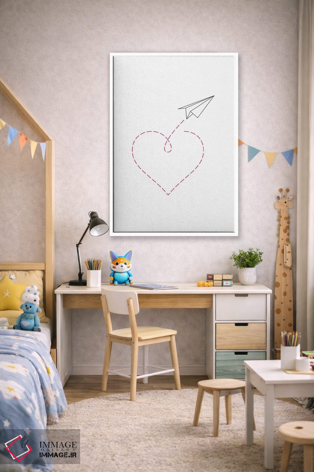 تابلو مینیمال هواپیمای کاغذی و قلب شماره ۲ اثر نووو پرینتس