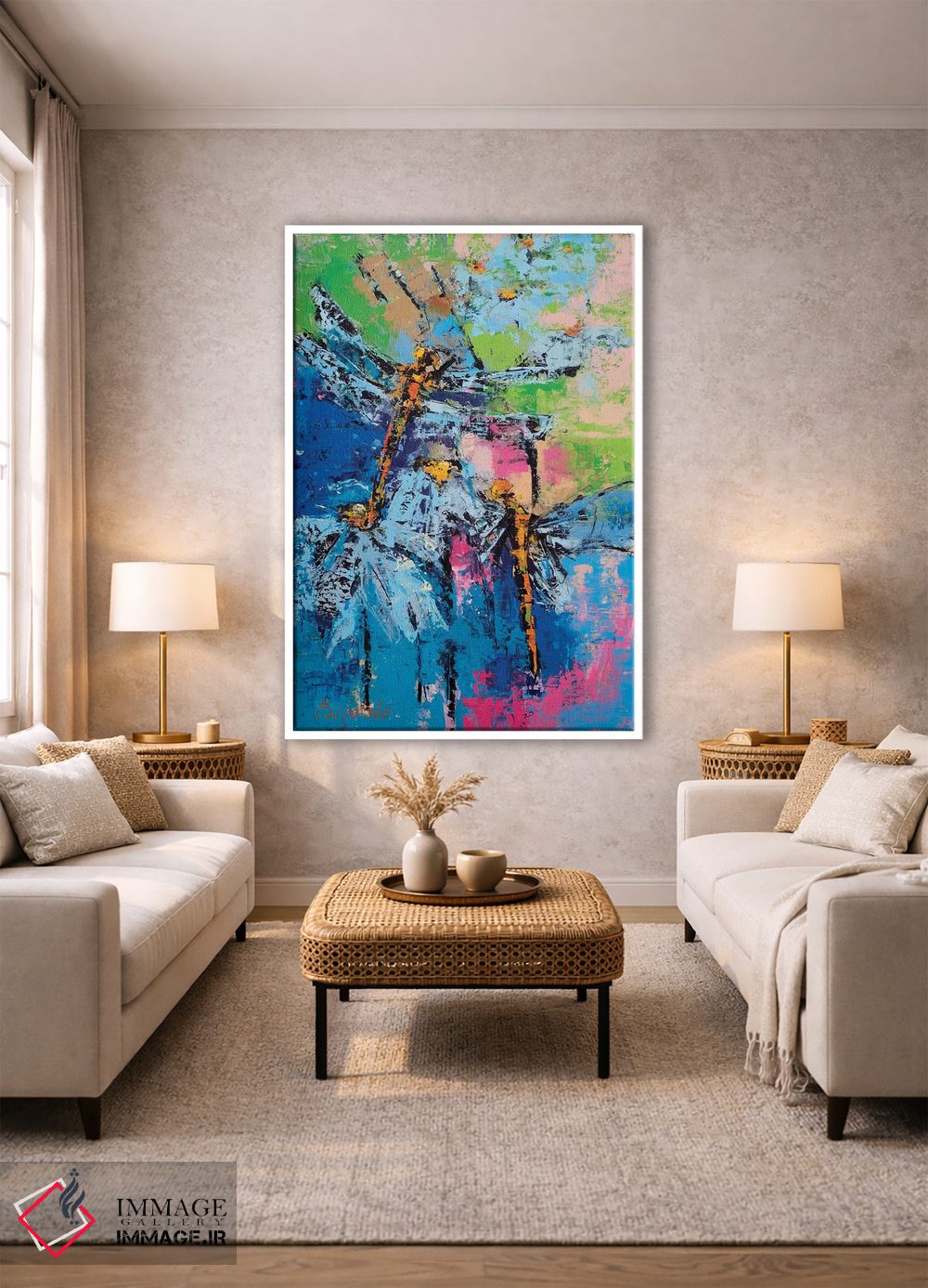 «اژدپروانهها (اصلاحشده: Dragonflies)» اثرِ «اولنا بوگاتسکا» مثل یک نفس تازه است؛ حس فصل را آرام وارد فضا میکند؛ برای اتاق خواب انتخابی خوشسلیقه است. با قاب روشن یا چوبی، حس طبیعیتری پیدا میکند.