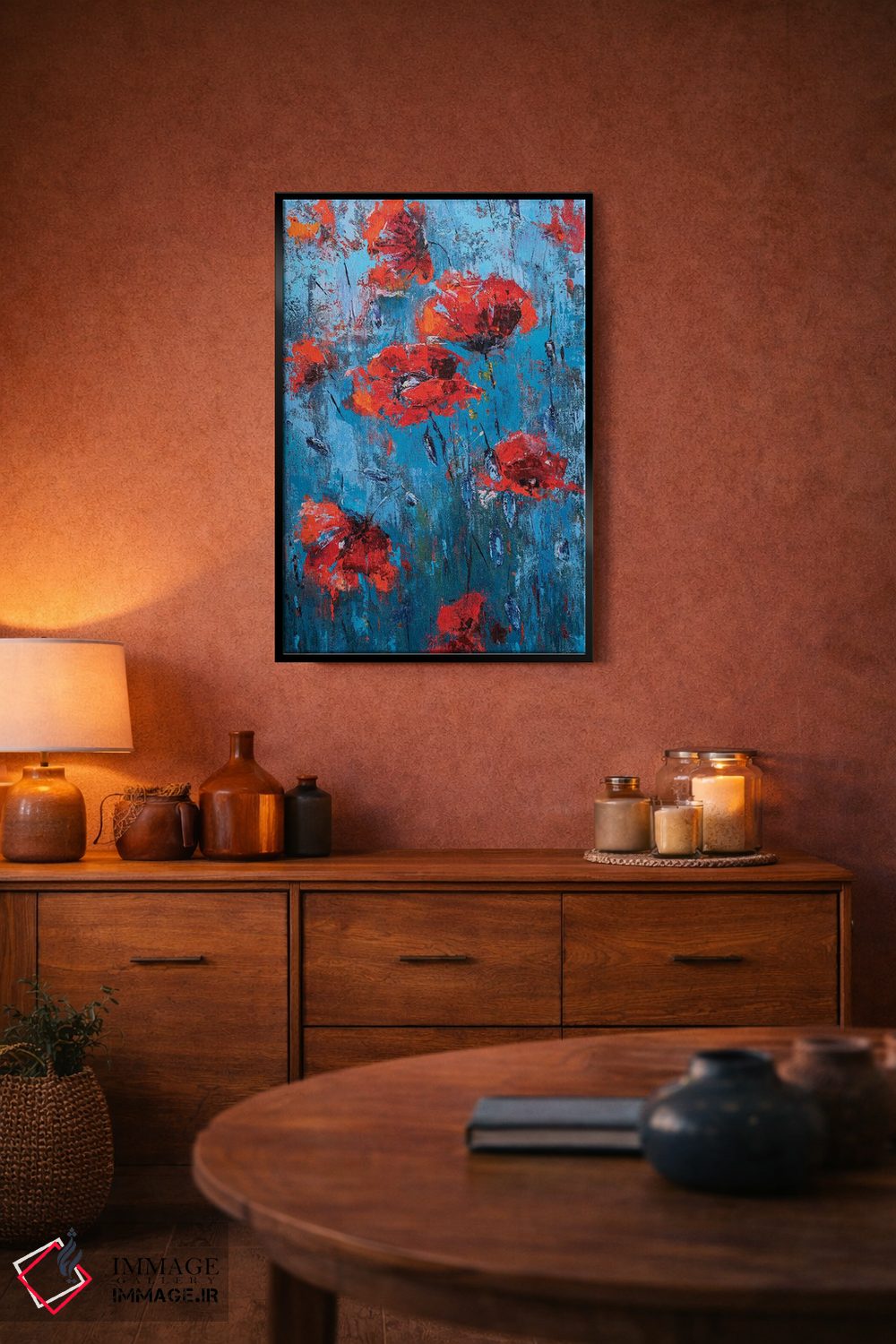 براساس پالت ترکیبی اثر، قاب تیک گرم (چوبی) پیشنهاد اول است و مشکی مات (فریم متوسط) مکمل. برای سفارشهای پروژهای با ابعاد و قابهای اختصاصی با ایماژ در تماس باشید.