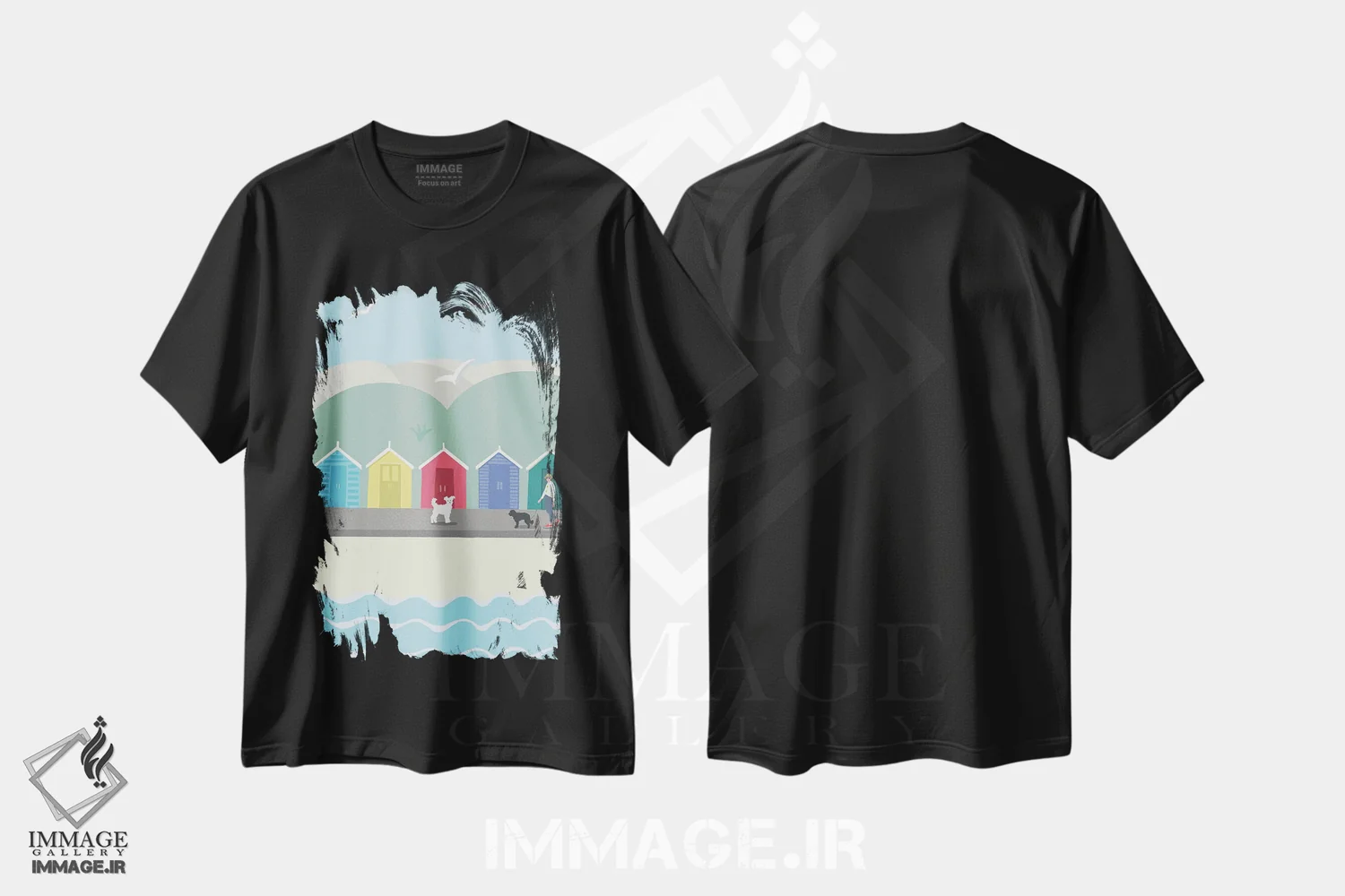 تیشرت مشکی طرح دار تپه های شنی، هنر دیجیتال اثر بتی بویْنس | فروشگاه ایماژ