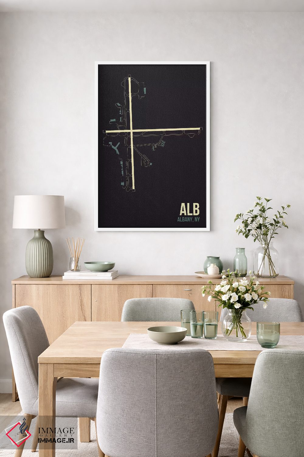 براساس پالت خنثی اثر، قاب بلوط روشن (چوبی) پیشنهاد اول است و استخوانی ملایم مکمل. برای سفارشهای پروژهای با ابعاد و قابهای اختصاصی با ایماژ در تماس باشید.