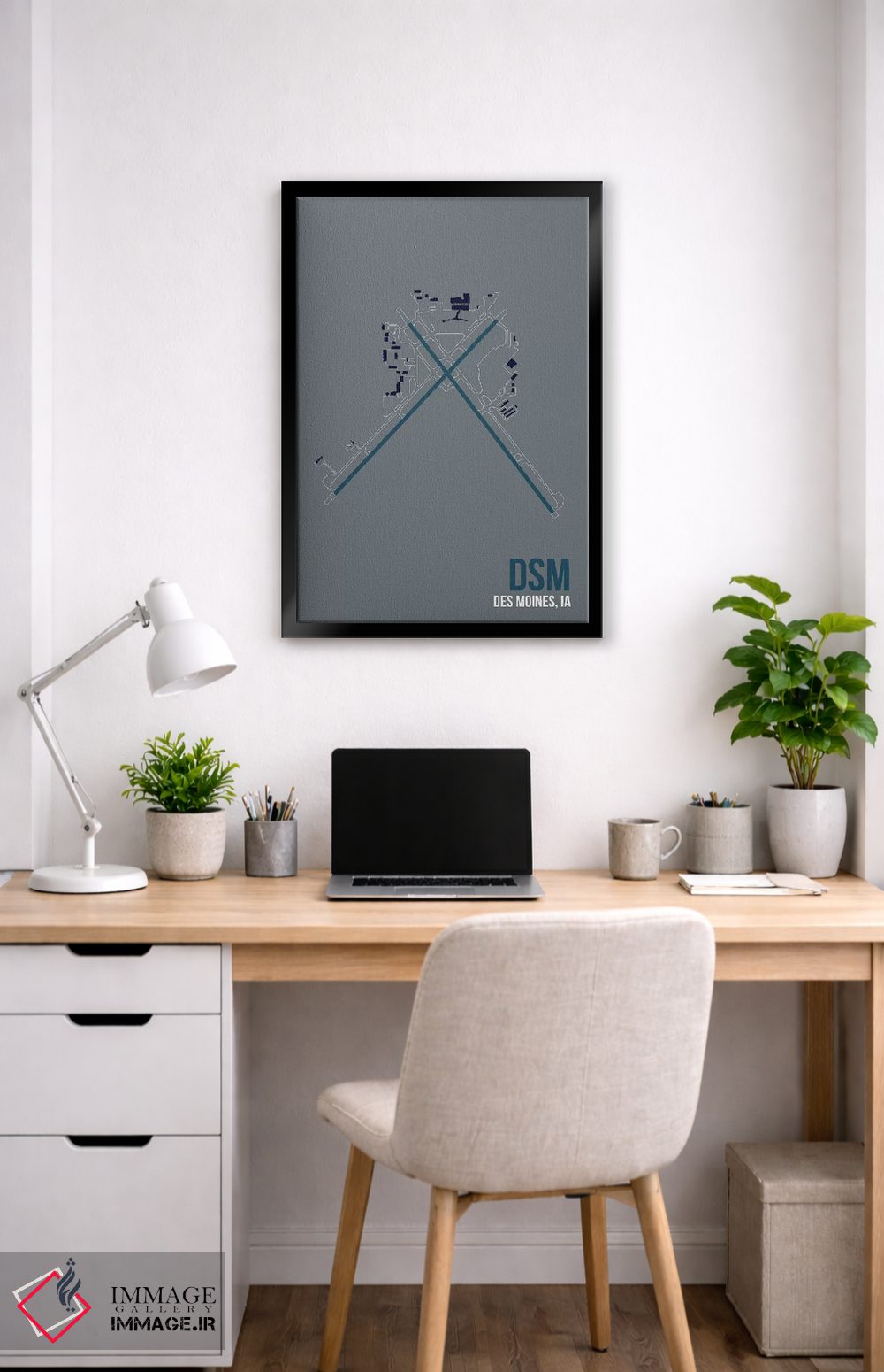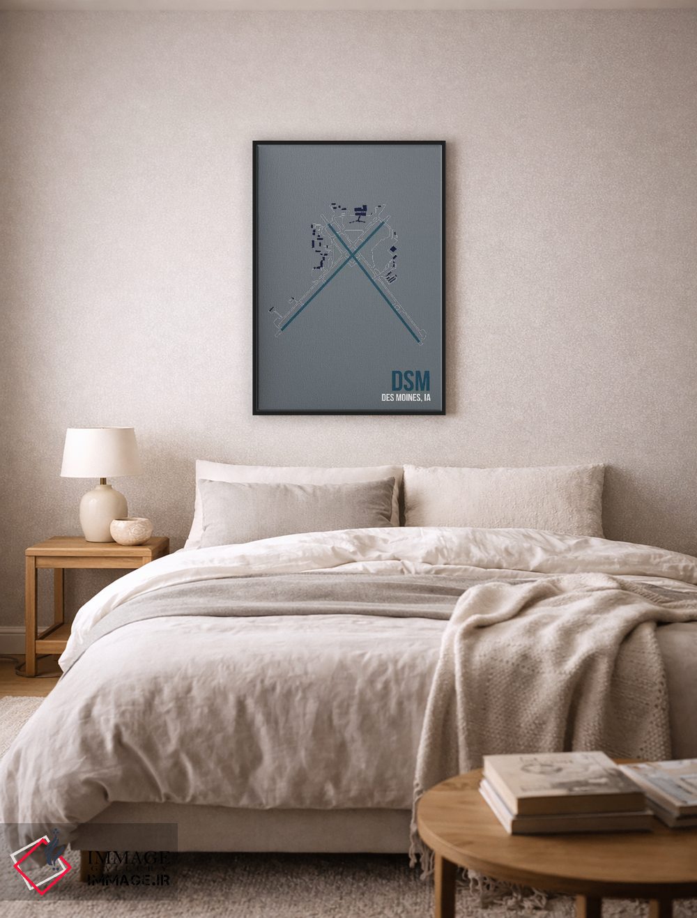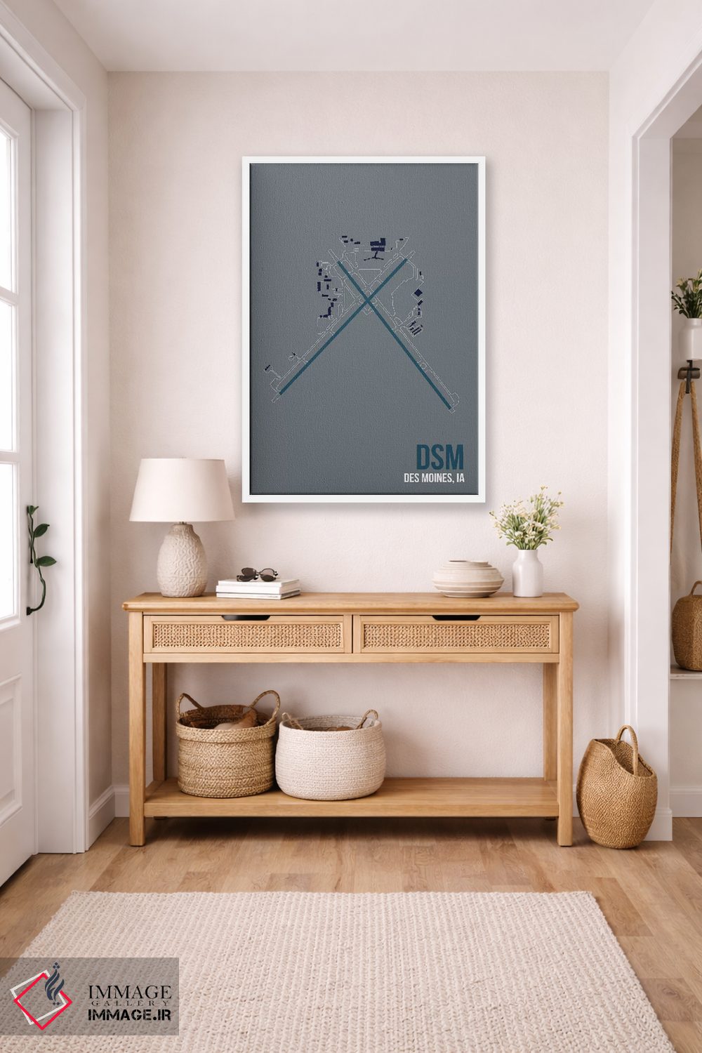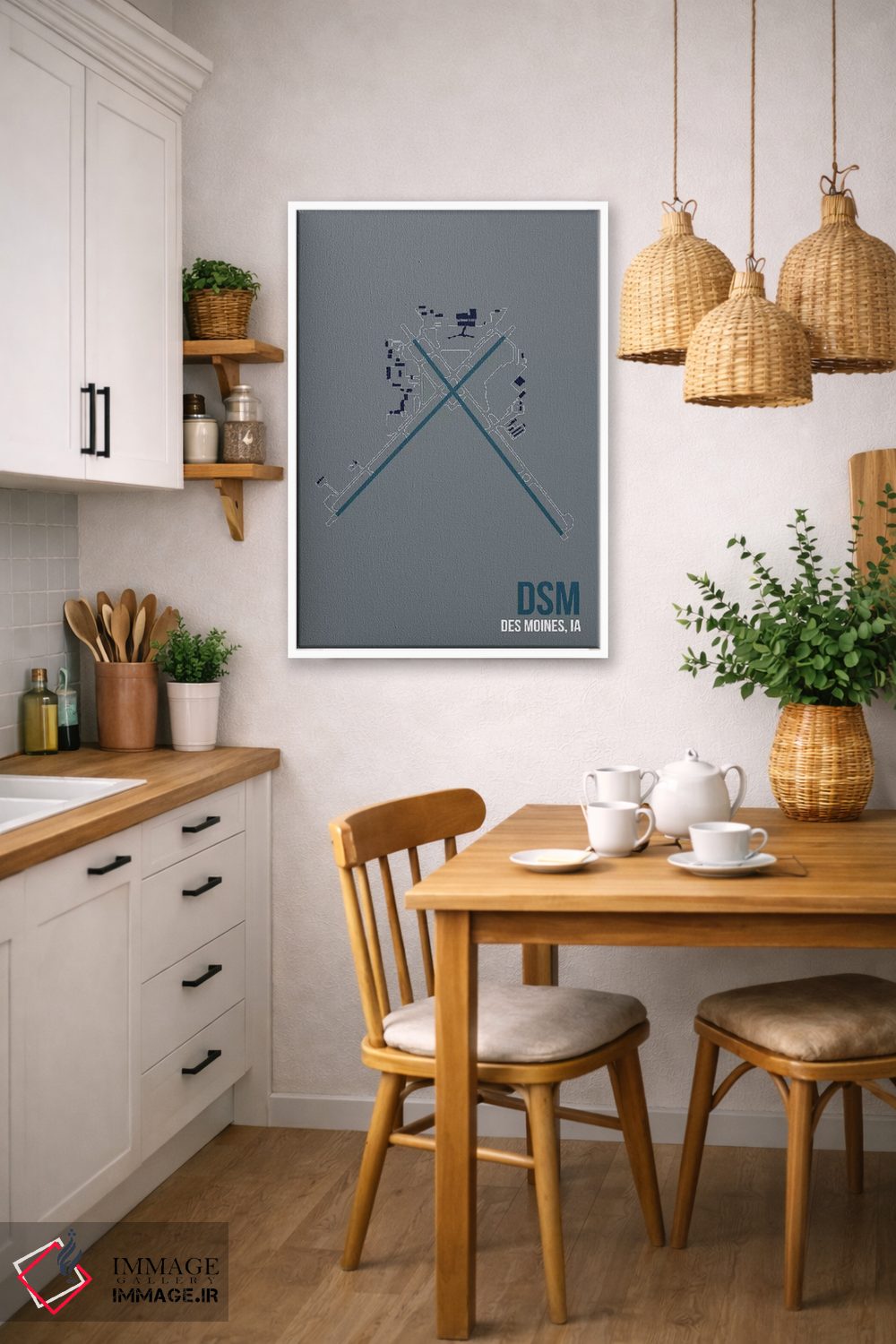 برای اتاق خواب، راهرو یا بالای کنسول، «دس موینز» اثرِ «۰۸ لفت» با موضوعِ این اثر و روحیه پرداختِ هنری انتخاب دلنشینی است.
