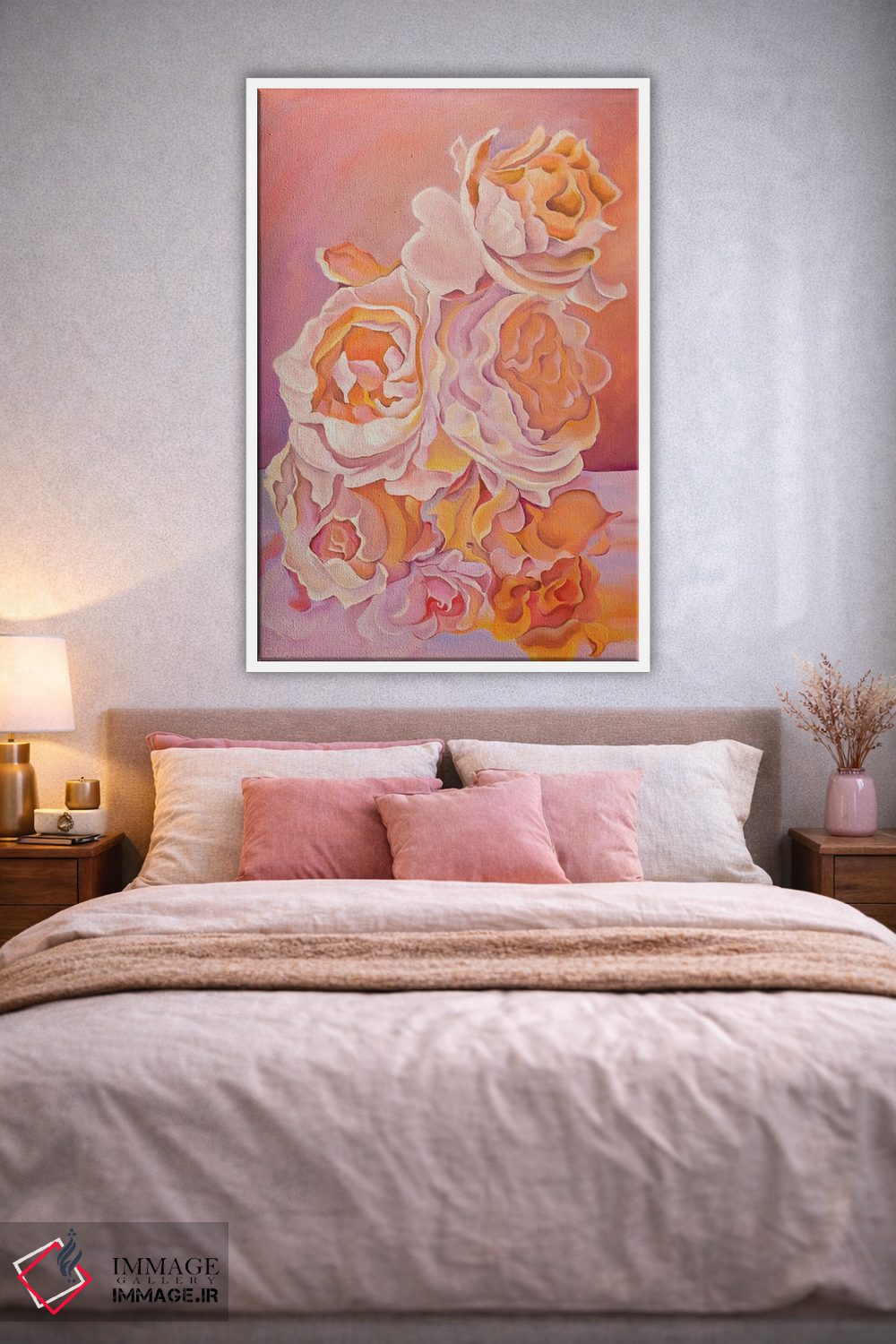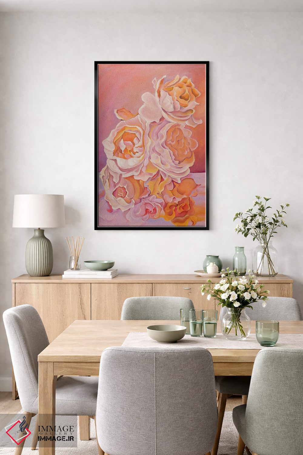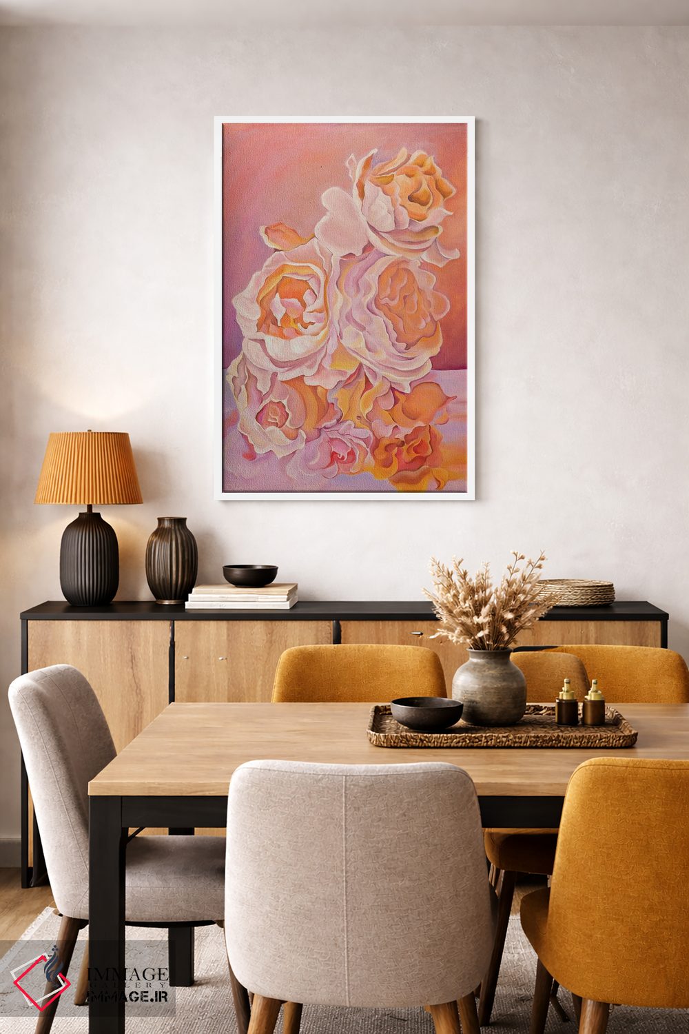 برای اتاق خواب و نشیمنهای آرام، «دسته گل غروب» اثرِ «الگا وُلنا» تعادل رنگیِ لطیفی به چیدمان میدهد؛ برای هدیه دادن انتخابی خوشسلیقه است. برای دیوار گالری هم ترکیبپذیر و خوشنشین است.