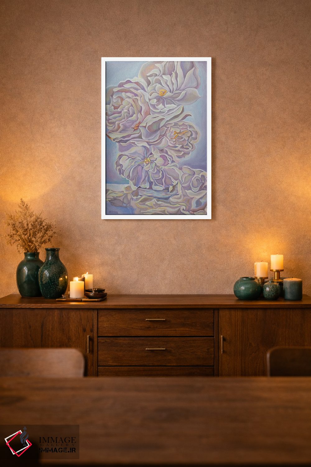 برای فضاهایی که به لطافت نیاز دارند، «عصر مرواریدی» اثرِ «الگا وُلنا» به دیوار، روشناییِ ملایم و دلنشین میدهد؛ برای دکورهای اسکانباوراوی انتخابی خوشسلیقه است. اگر دنبال «زیباییِ بیصدا» هستید، این اثر همان حس را دارد.