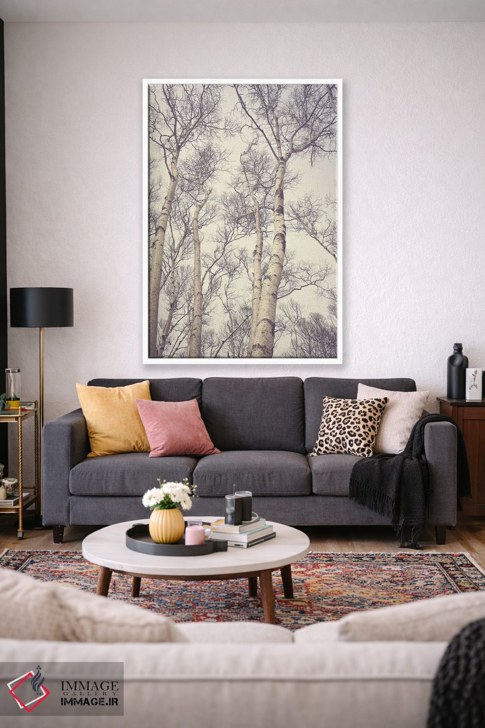 «درختان غان» اثرِ «اولیویا جوی سنت کلر» با موضوعِ این اثر، به چیدمان رنگی فضا کمک میکند و حس پرداختِ هنری را هم حفظ میکند.