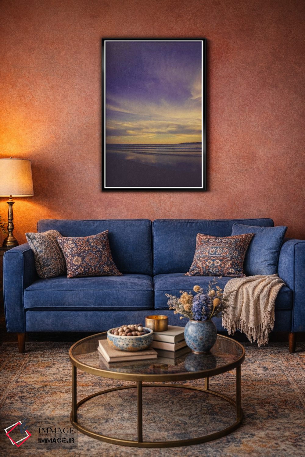 براساس پالت ترکیبی اثر، قاب تیک گرم (چوبی) پیشنهاد اول است و مشکی مات (فریم متوسط) مکمل. برای سفارشهای پروژهای با ابعاد و قابهای اختصاصی با ایماژ در تماس باشید.