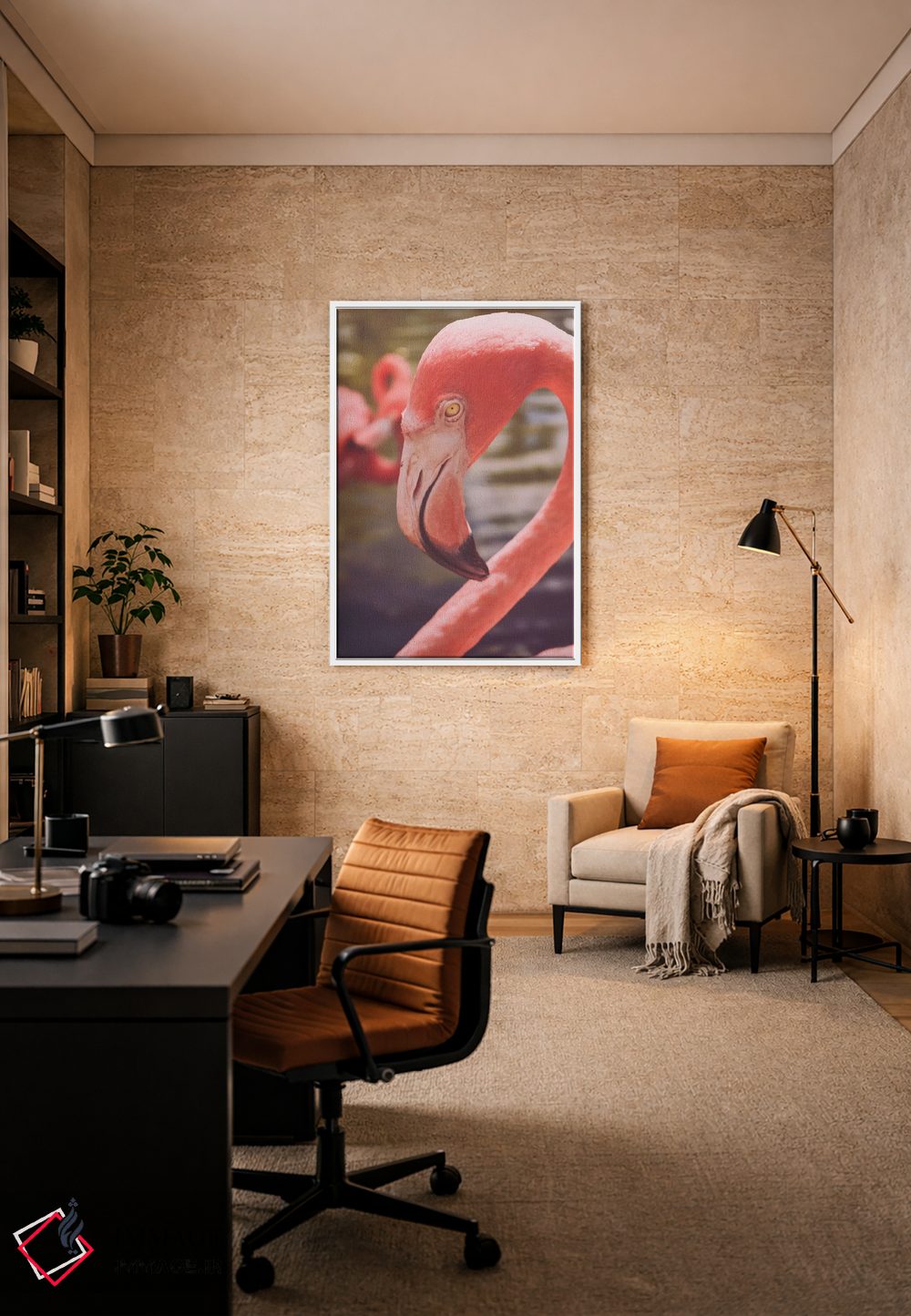 برای اتاقی که به یک عنصر دوستداشتنی نیاز دارد، «عشق فلامینگوها» اثرِ «اولیویا جوی سنت کلر» گرما و شخصیت به فضا اضافه میکند؛ برای دیوار کنار میز کار انتخابی خوشسلیقه است. در کنار گیاهان و نور طبیعی، جذابتر هم میشود.