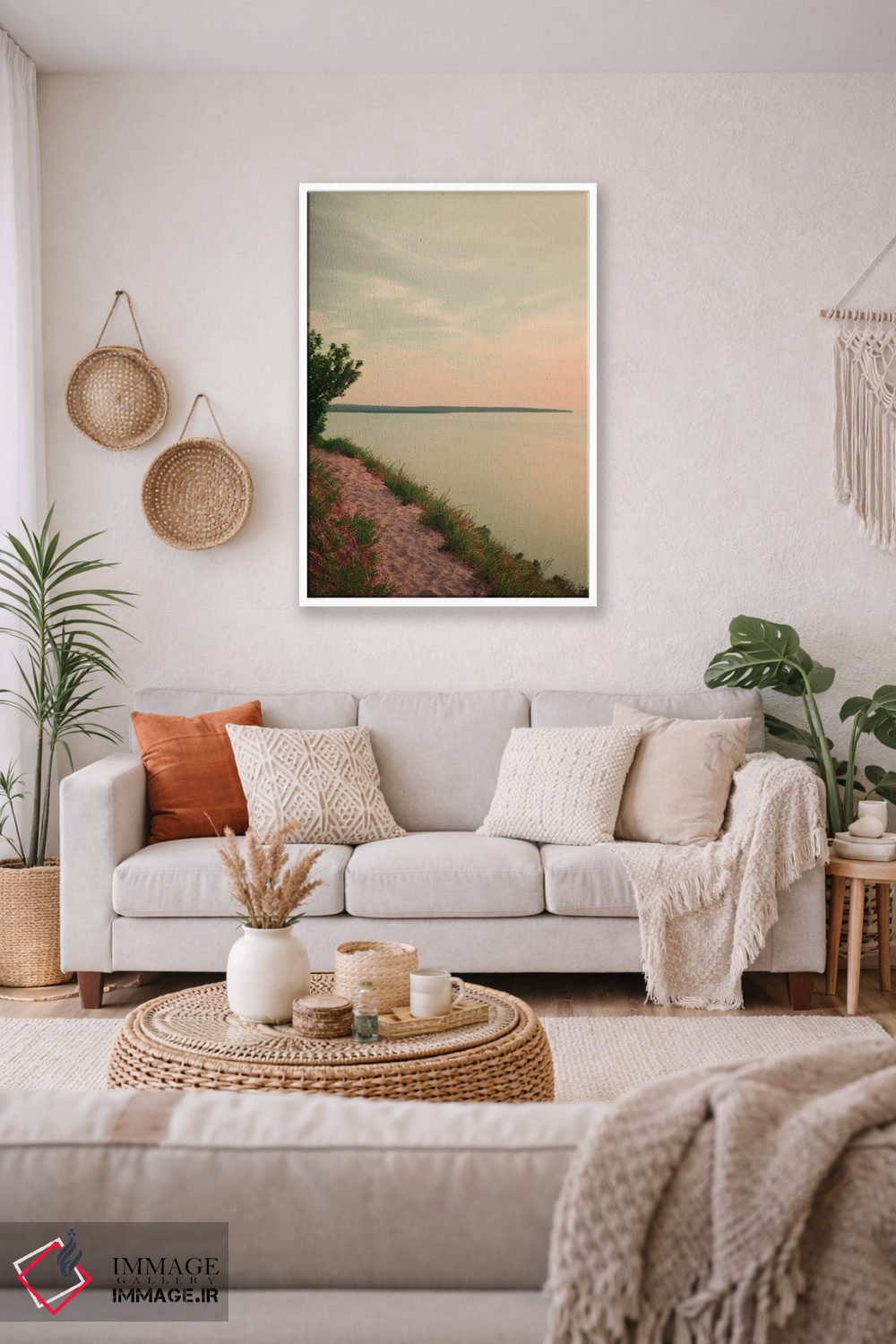 براساس پالت ترکیبی اثر، قاب بلوط روشن (چوبی) پیشنهاد اول است و استخوانی ملایم مکمل. برای سفارشهای پروژهای با ابعاد و قابهای اختصاصی با ایماژ در تماس باشید.