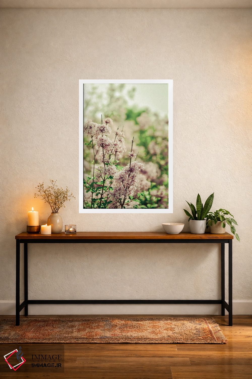 اگر به دکورهای طبیعی علاقه دارید، «آرام باش عزیزم یاسی» اثرِ «اولیویا جوی سنت کلر» فضا را نرمتر و مهماننوازتر میکند، برای راهروهای مینیمال گزینهٔ مناسبیست. با قاب روشن یا چوبی، حس طبیعیتری پیدا میکند.