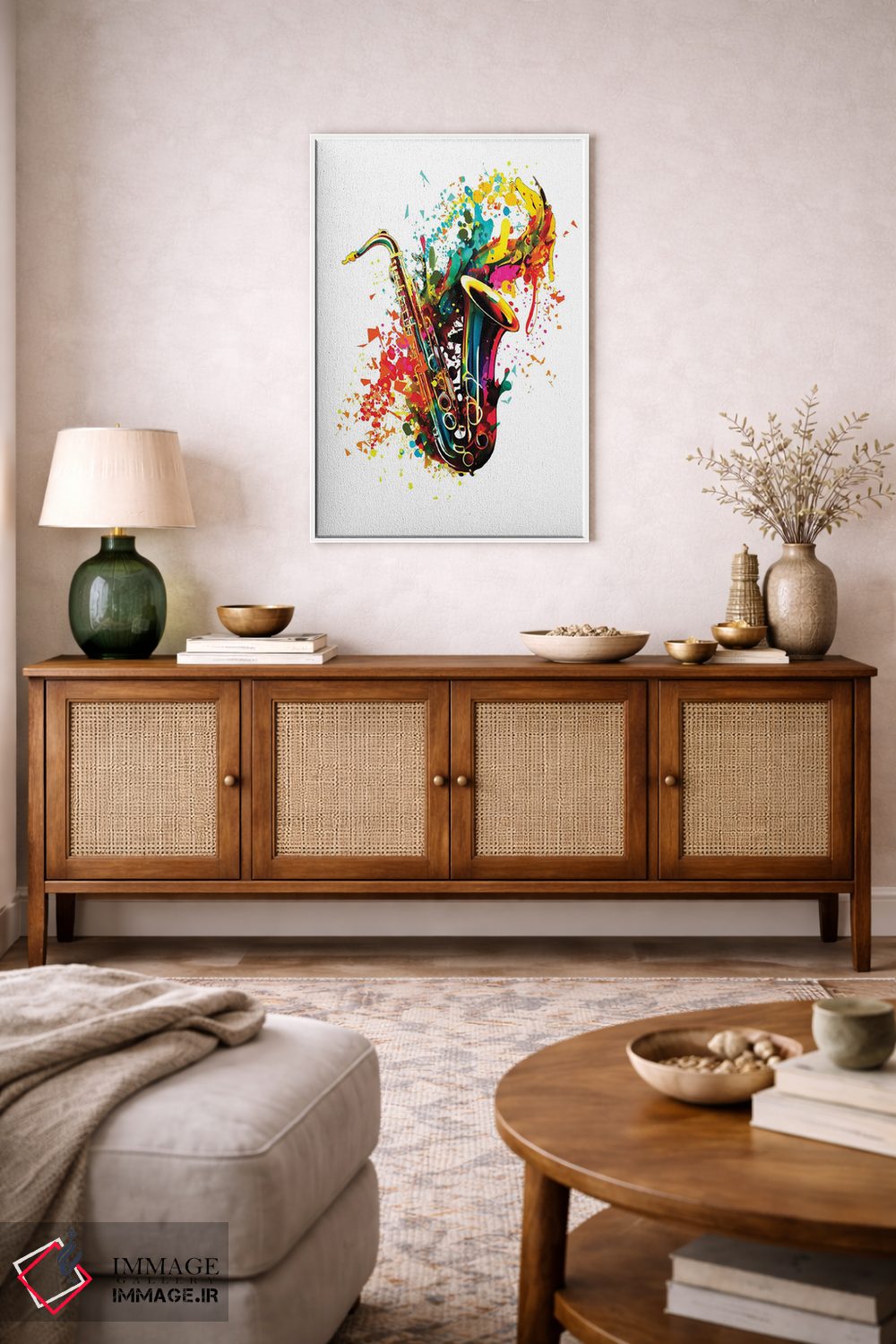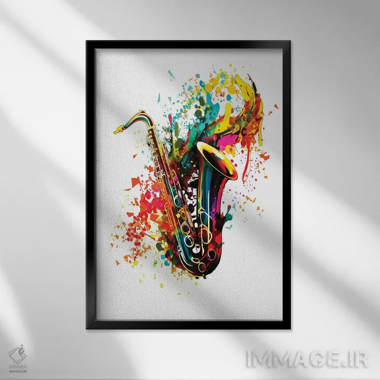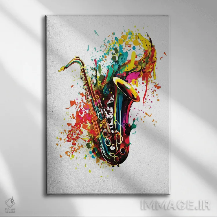 تابلو دکوراتیو طرح مدرن ساکسیفون با زمینه انتزاعی اثر اولنا آرت