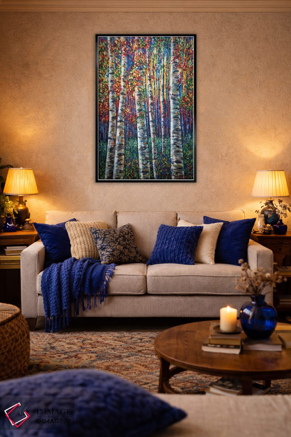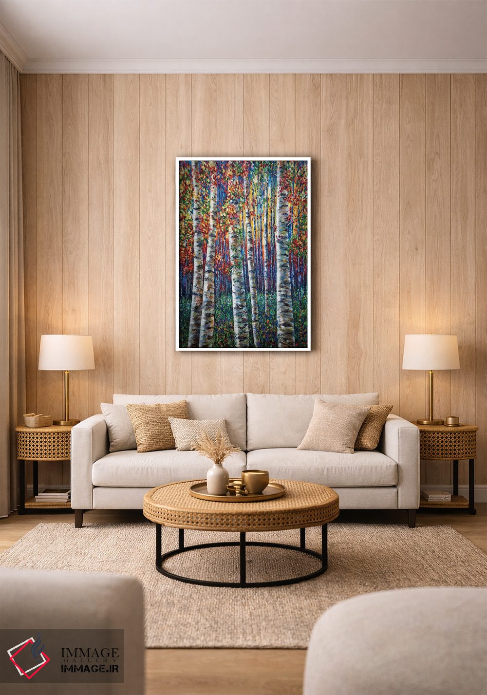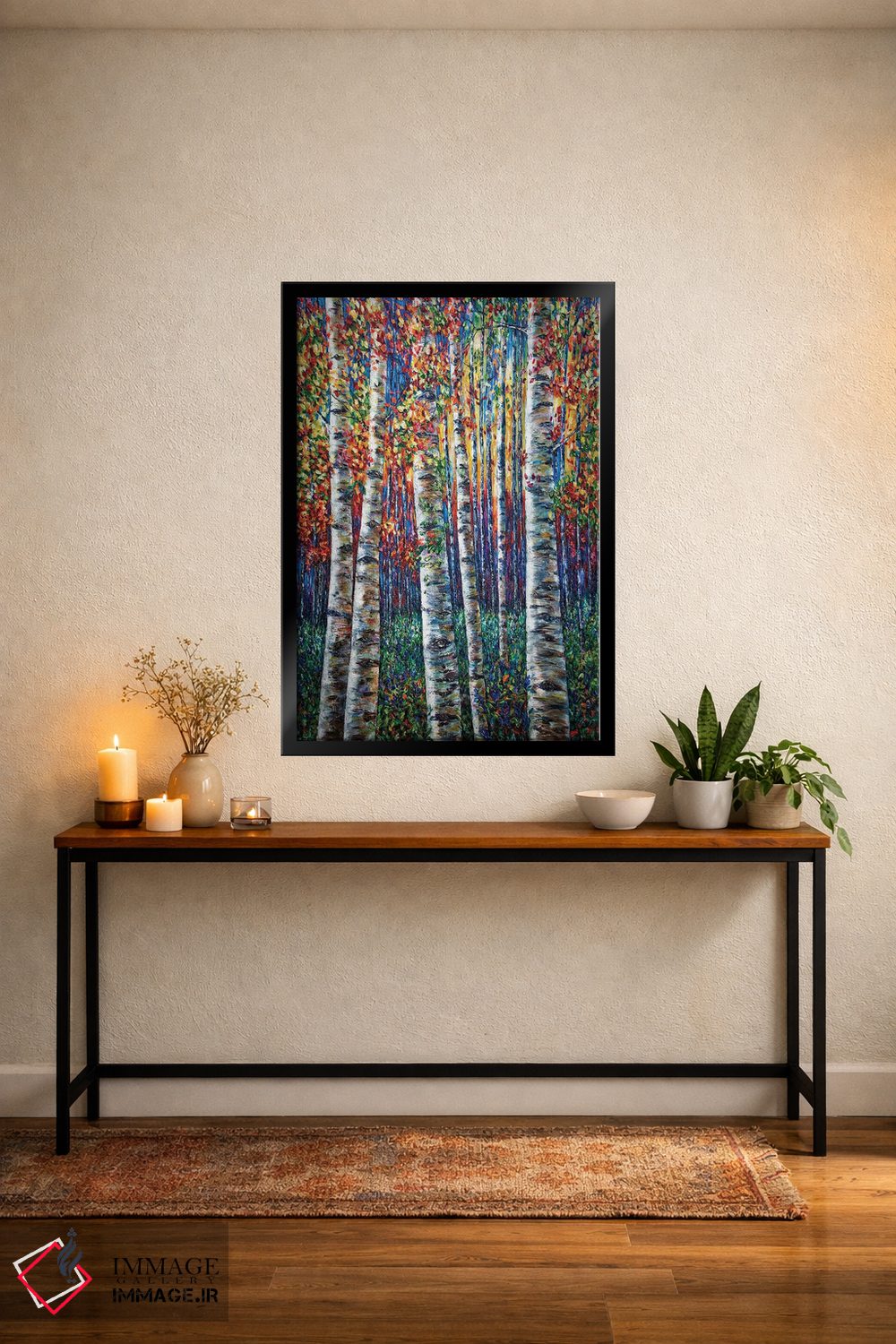 برای فضاهایی که به لطافت نیاز دارند، «سمفونی سپیدارها، نقاشی جنگل با تکنیک ایمپاستو» اثرِ «اولنا آرت (استودیو هنری)» برای دیوارهای ساده، یک لطافتِ دقیق میسازد؛ برای فضاهای بوهمی انتخابی خوشسلیقه است. حضورش آرام است، اما بیاثر نیست.
