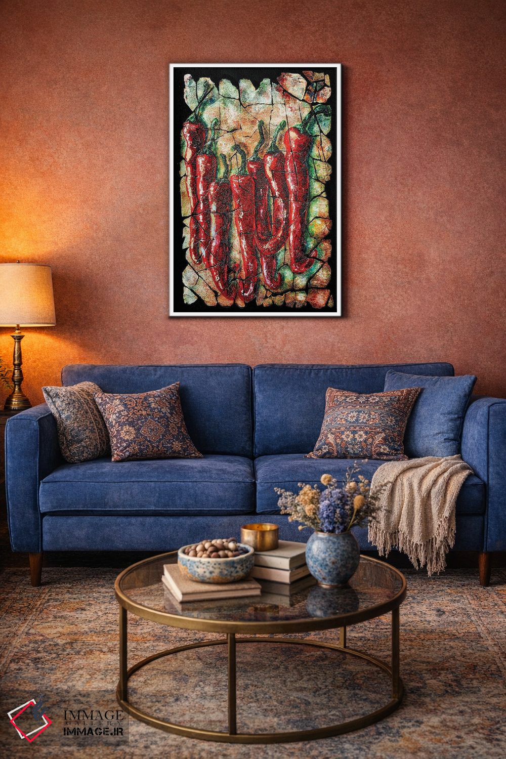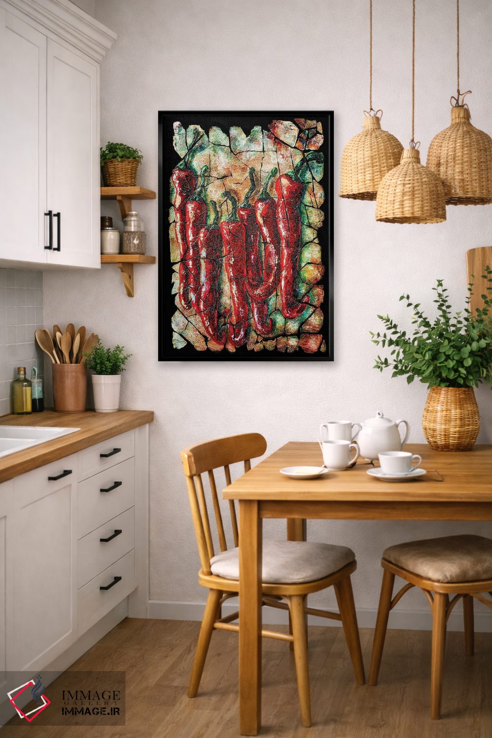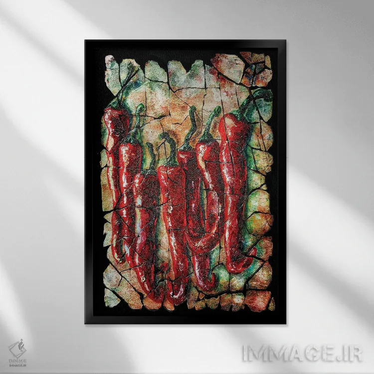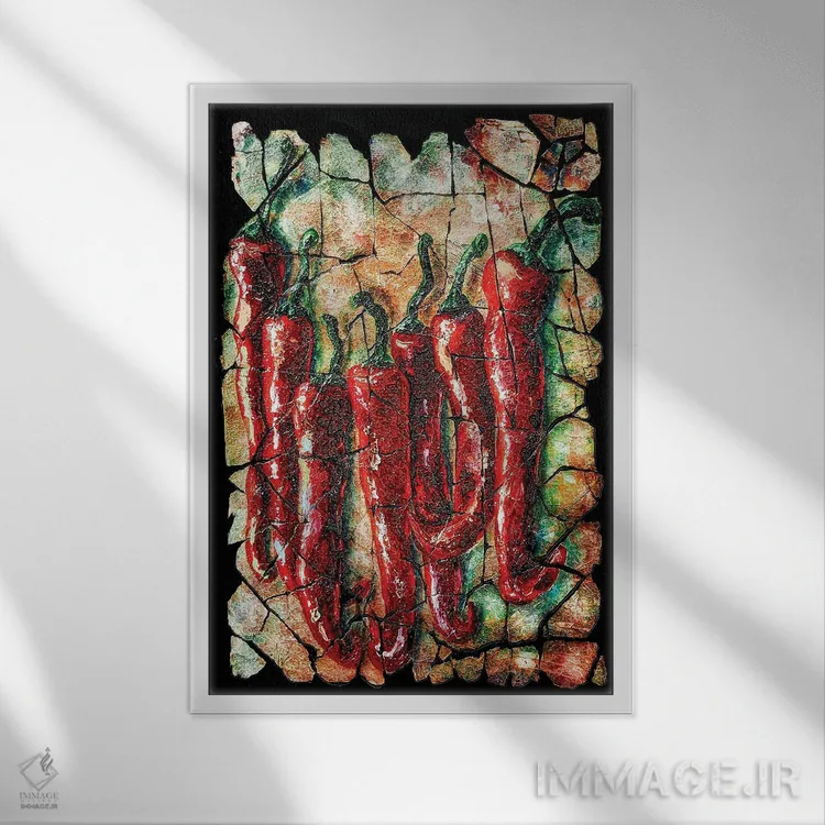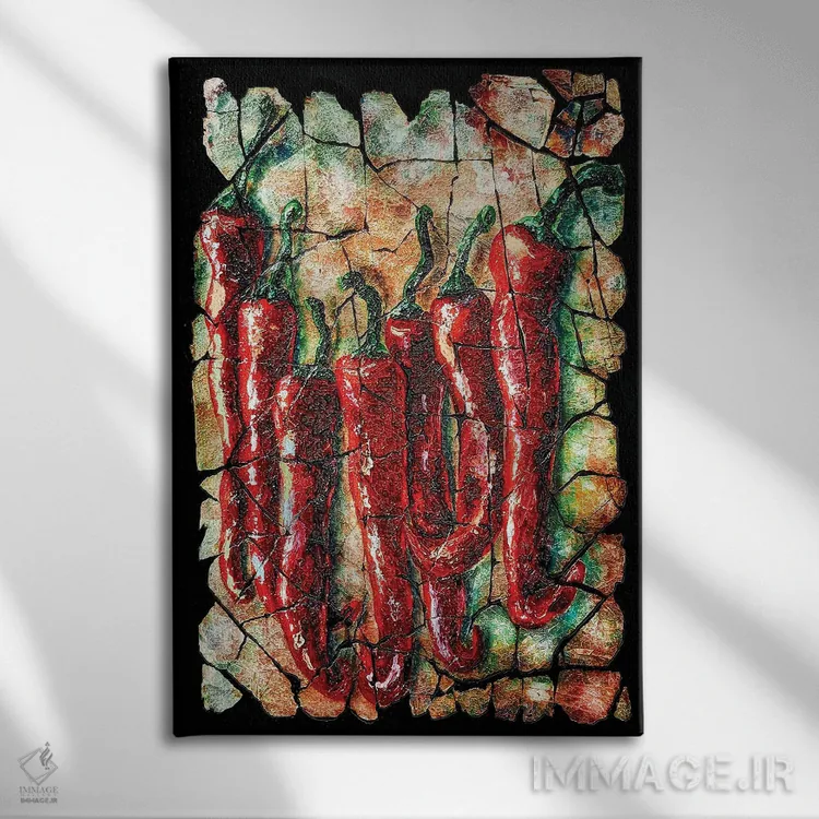 تصویری که اشتها را تحریک نمیکند؛ اما حال خوبِ غذاخوری را کامل میکند—«فرسکوی فلفلهای تند با زمینه ترکخورده» اثرِ «اولنا آرت (استودیو هنری)».