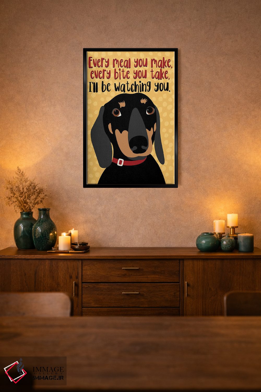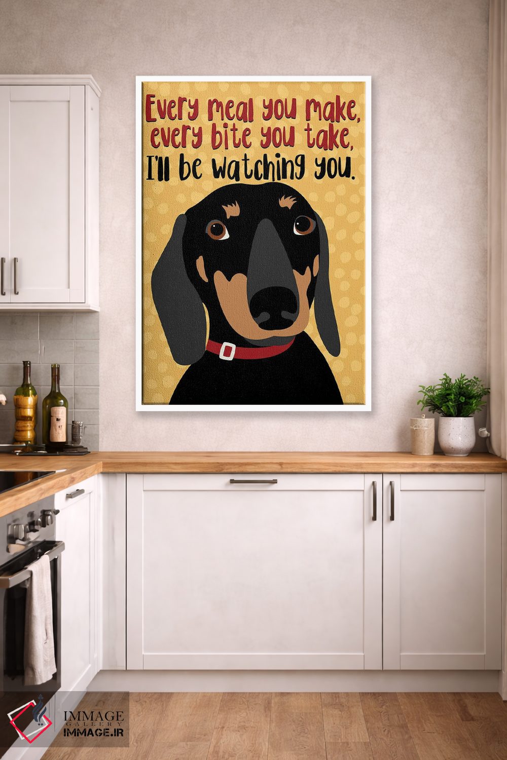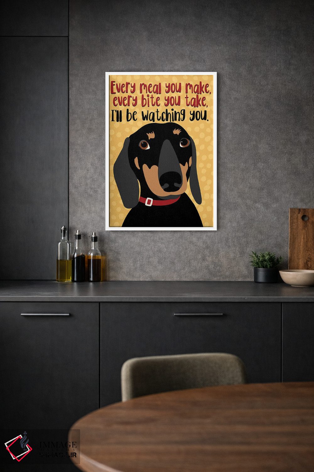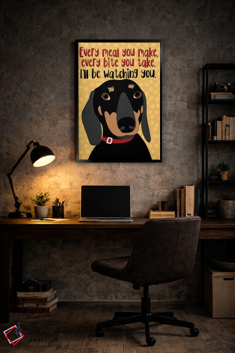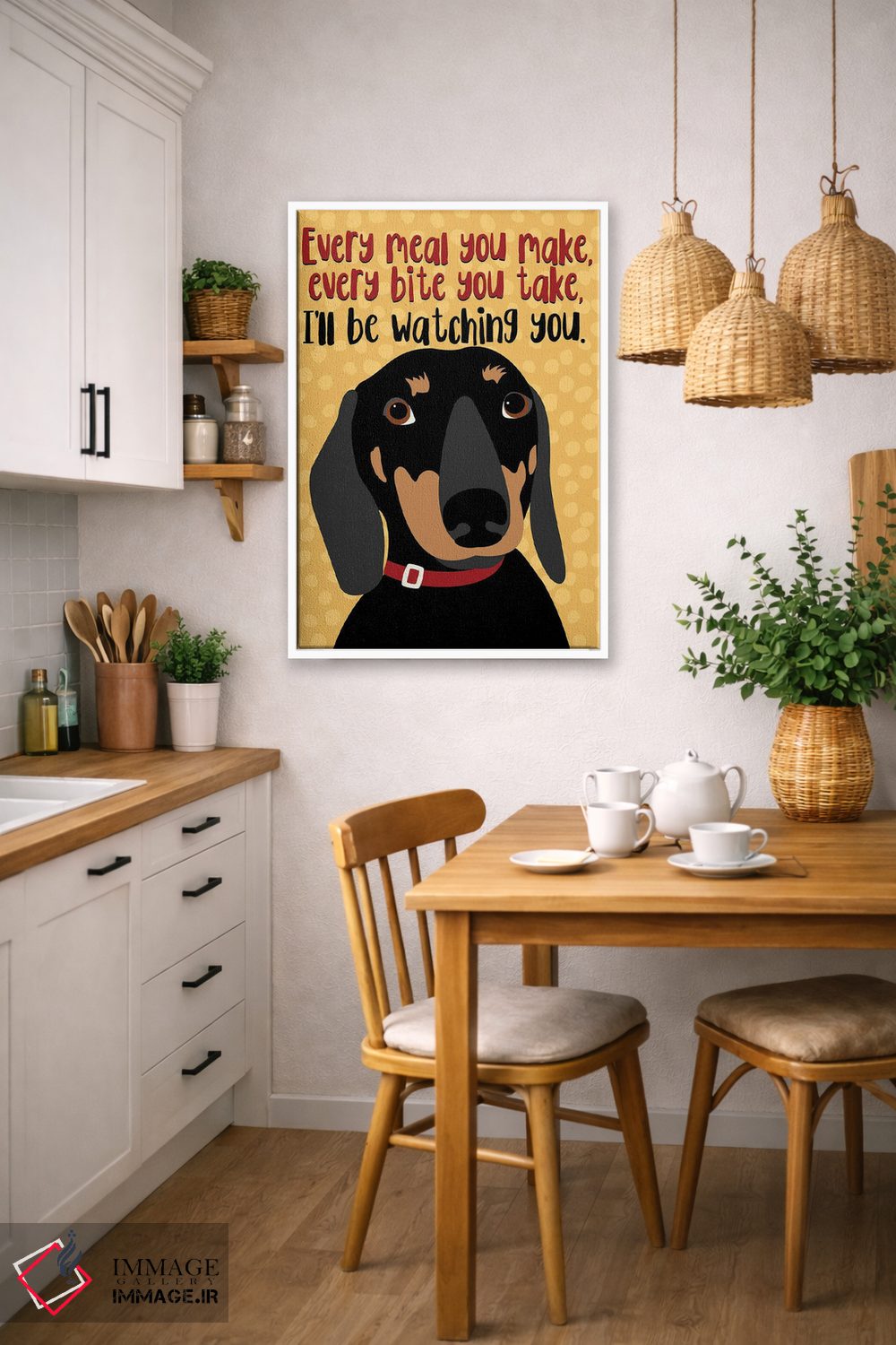 این اثر با عنوان «تکسگ داکسهوند: هر وعدهای که درست میکنی...» اثرِ «جینجر الیفنت» به دیوار، انرژیِ نرم و زنده میدهد؛ برای دیوار کنار میز کار انتخابی خوشسلیقه است. در کنار گیاهان و نور طبیعی، جذابتر هم میشود.