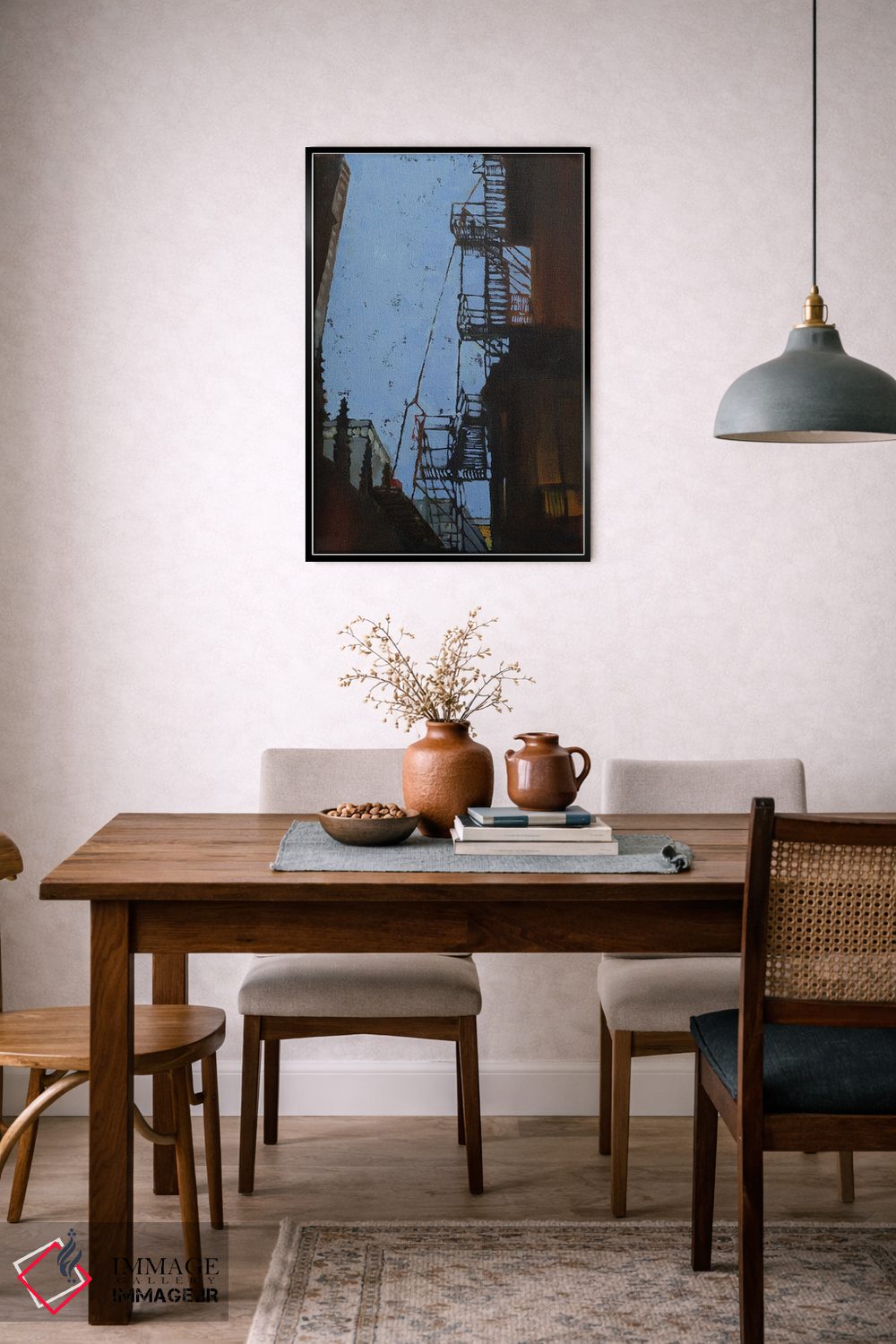 بوم گالری ایماژ نسخهی دکوراتیوِ سطحبالا از یک اثر هنری است. روی کنواس سفیدِ یکدست و بدون اسید با چاپ هنری به استاندارد جیکلی (Giclée) با سیستم رنگ Epson UltraChrome HDR برای نیمسایههای نرمتر و سایههای جزئیتر؛ این ترکیب باعث میشود گذارهای رنگی نرمتر و بافتها خواناتر شوند.