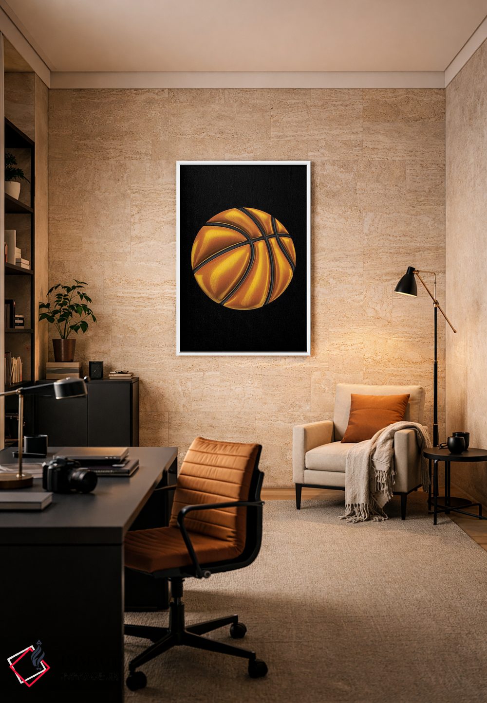 تابلو دکوراتیو بسکتبال اثر اکتاویان میلو - نمای روبه‌رو روی دیوار