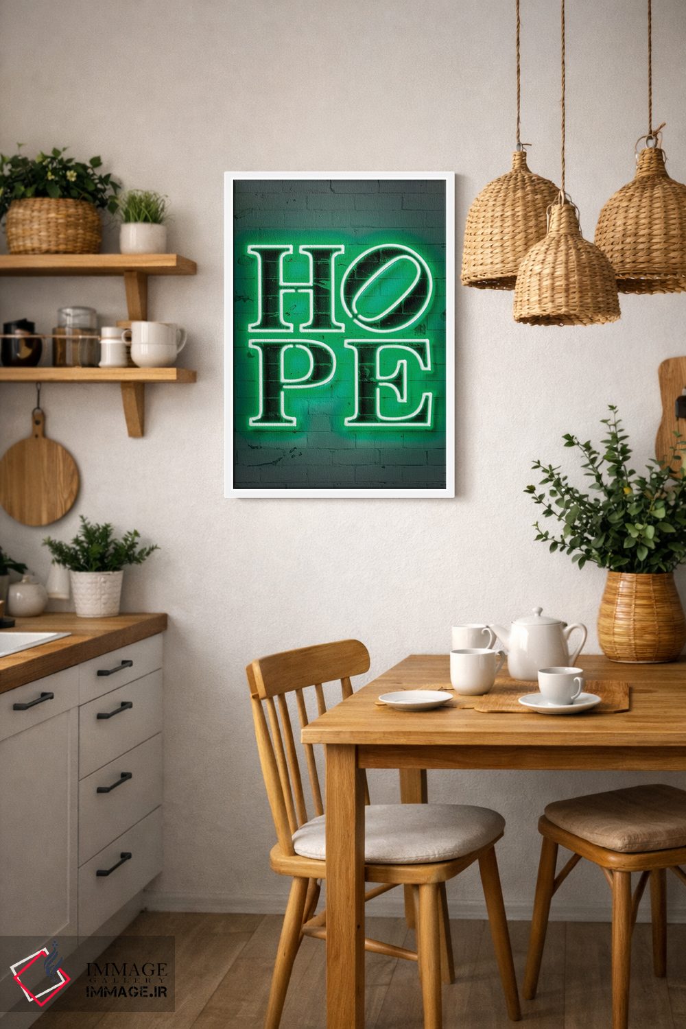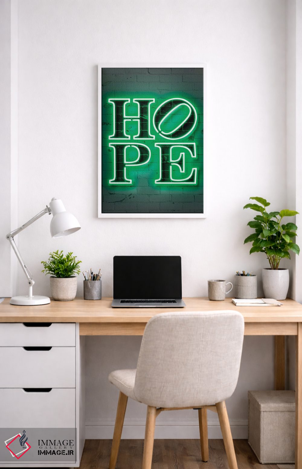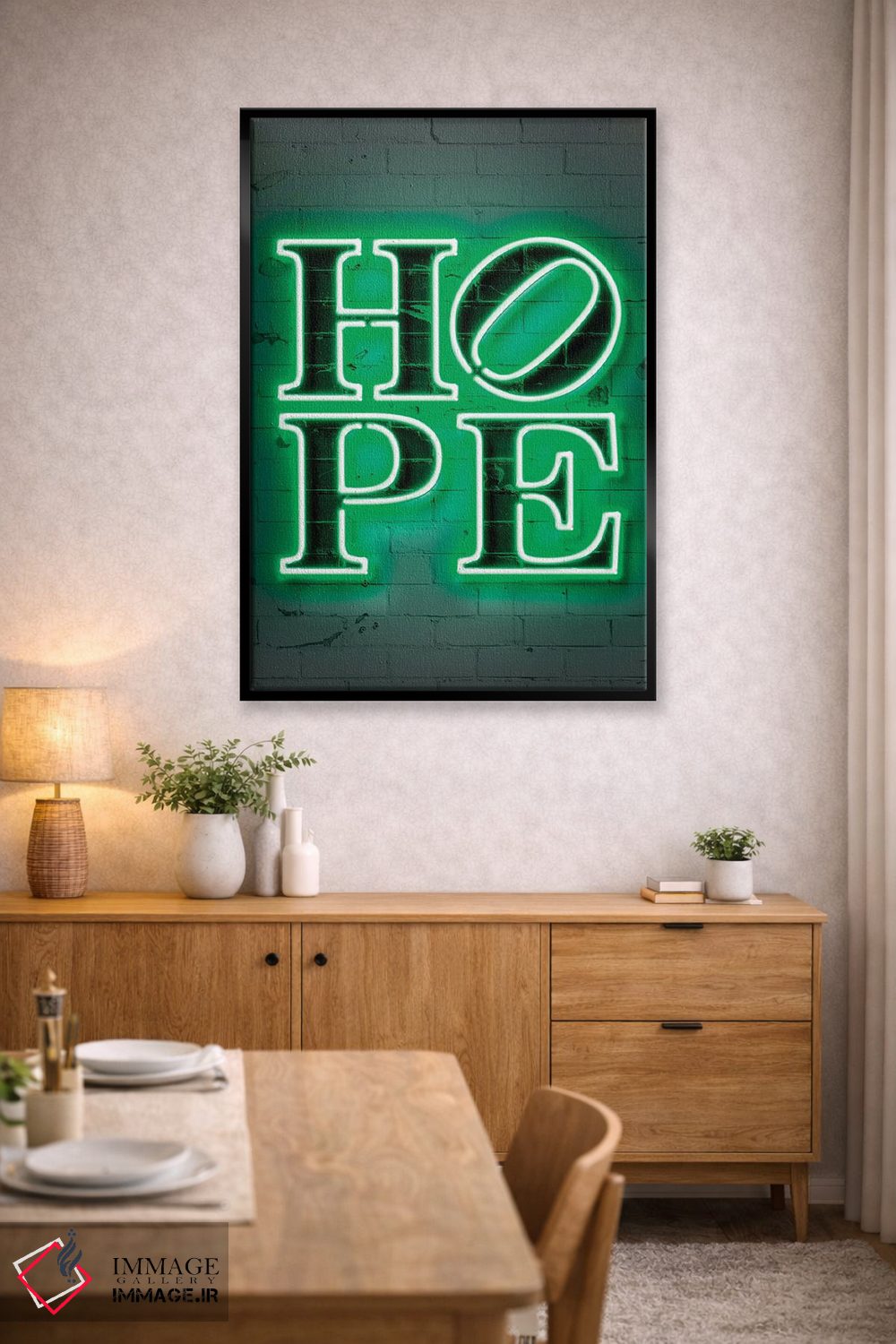 «امید» اثرِ «اکتاویان میلو» بهخاطر ساختار گرافیکیاش، کنار رنگهای خنثی و دکور صنعتی هم خوب جلوه میکند.