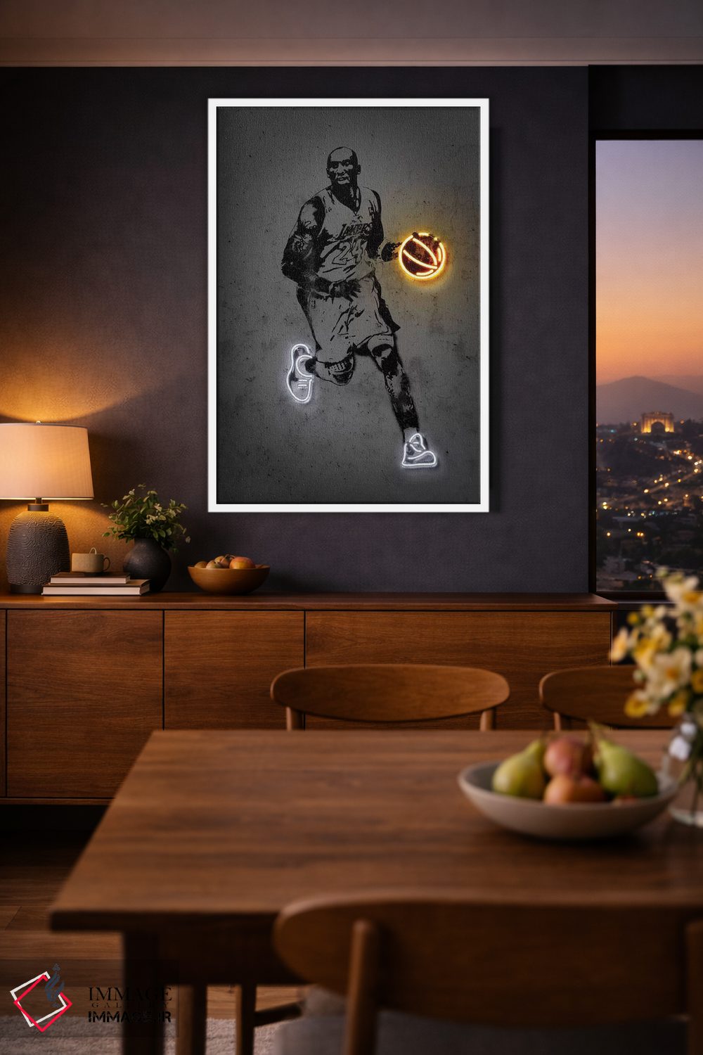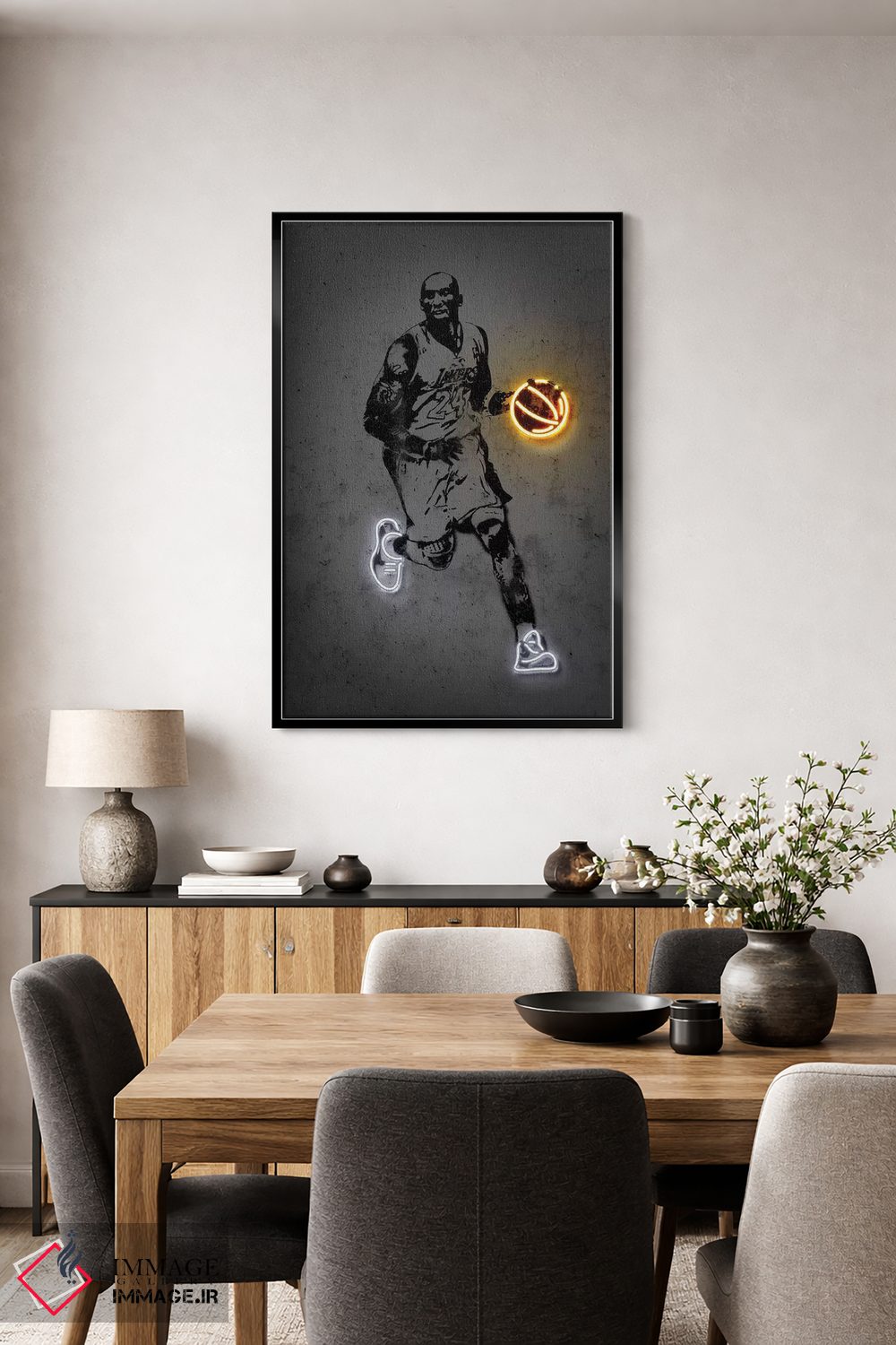 براساس پالت گرم اثر، قاب بلوط روشن (چوبی) پیشنهاد اول است و استخوانی ملایم مکمل. برای سفارشهای پروژهای با ابعاد و قابهای اختصاصی با ایماژ در تماس باشید.