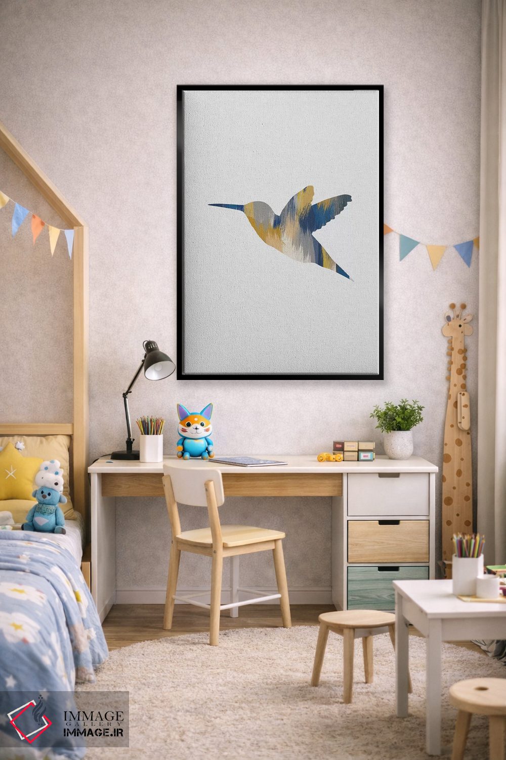 در «مرغ مگسخوار آبی و زرد ۱» اثرِ «اورارا استودیو (استودیو هنری)»، حضور حیوانات برای دکورهای مینیمال، یک نقطهٔ توجه میسازد؛ برای دکورهایی با رنگهای خنثی انتخابی خوشسلیقه است. برای دیوار گالریوار هم گزینهٔ خوبیست.