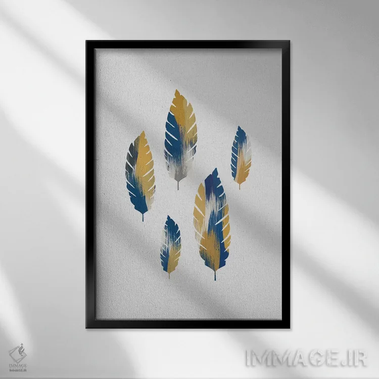 تابلو مینیمال برگ های آبی و زرد اثر اورارا استودیو