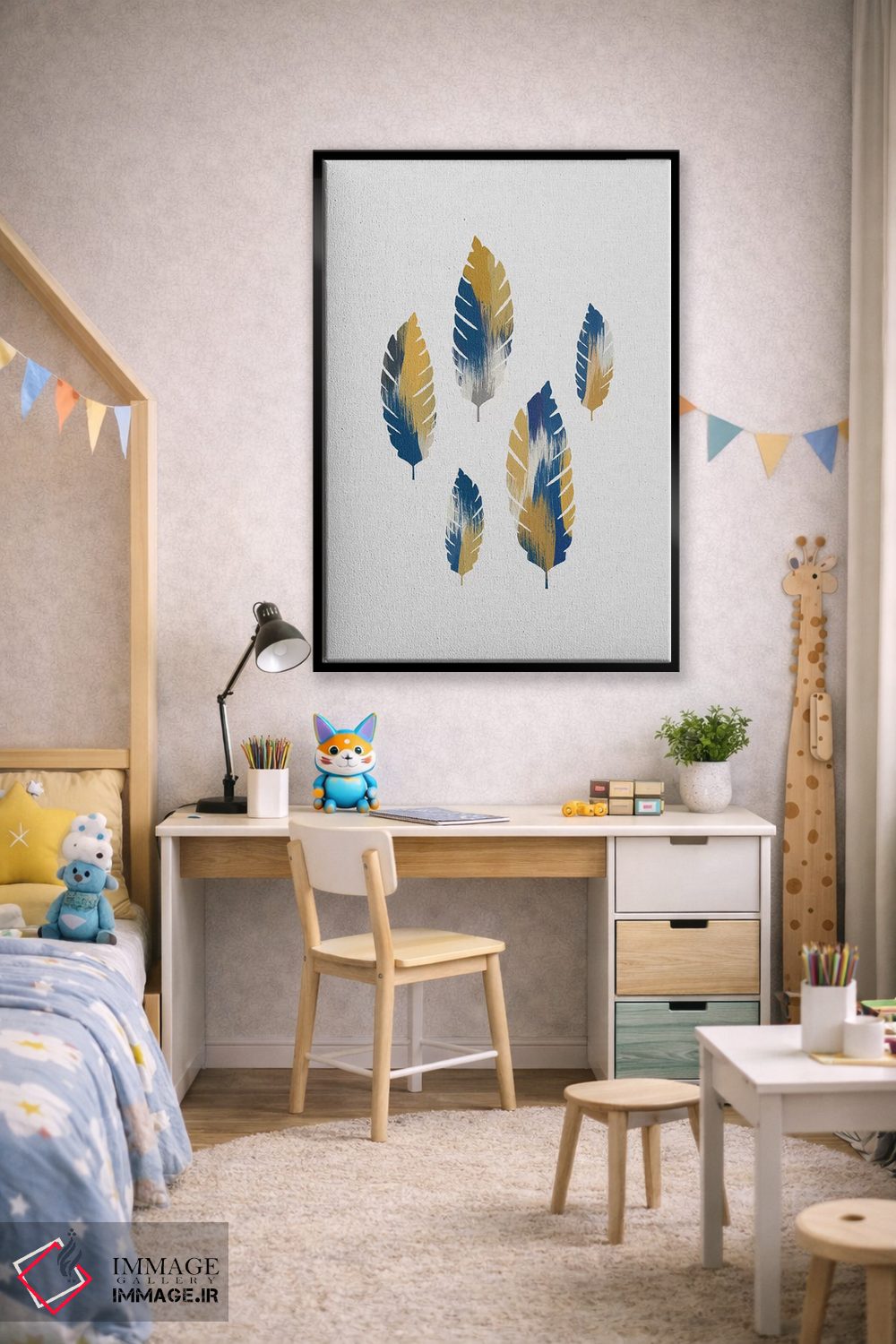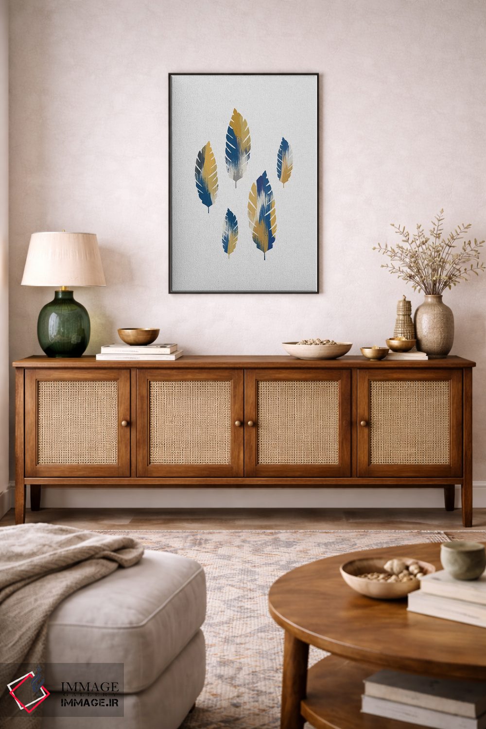 برای دیواری که میخواهید نرمتر دیده شود، «برگهای آبی و زرد» اثرِ «اورارا استودیو (استودیو هنری)» حس فصل را آرام وارد فضا میکند؛ برای کافهها و فضاهای آرام انتخابی خوشسلیقه است. فضا را شلوغ نمیکند؛ فقط لطیفترش میکند.